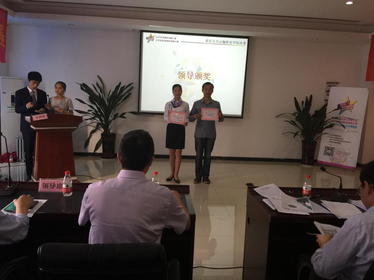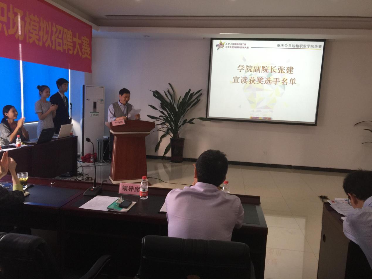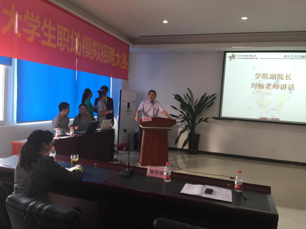 2015年5月14日,正和岛杯重庆市第二届大学生模拟招聘大赛重庆公共运输学院决赛在学院A403举行。由各个系部经初赛筛选后推荐的共15名选手参加了此次决赛,学院领导张健副院长、刘畅副院长、财务总监郭祖红老师到场观看了比赛,学院办公室王欣主任、教务处郁勋副处长、学生处刘妮娅副处长担任本次比赛的评委。