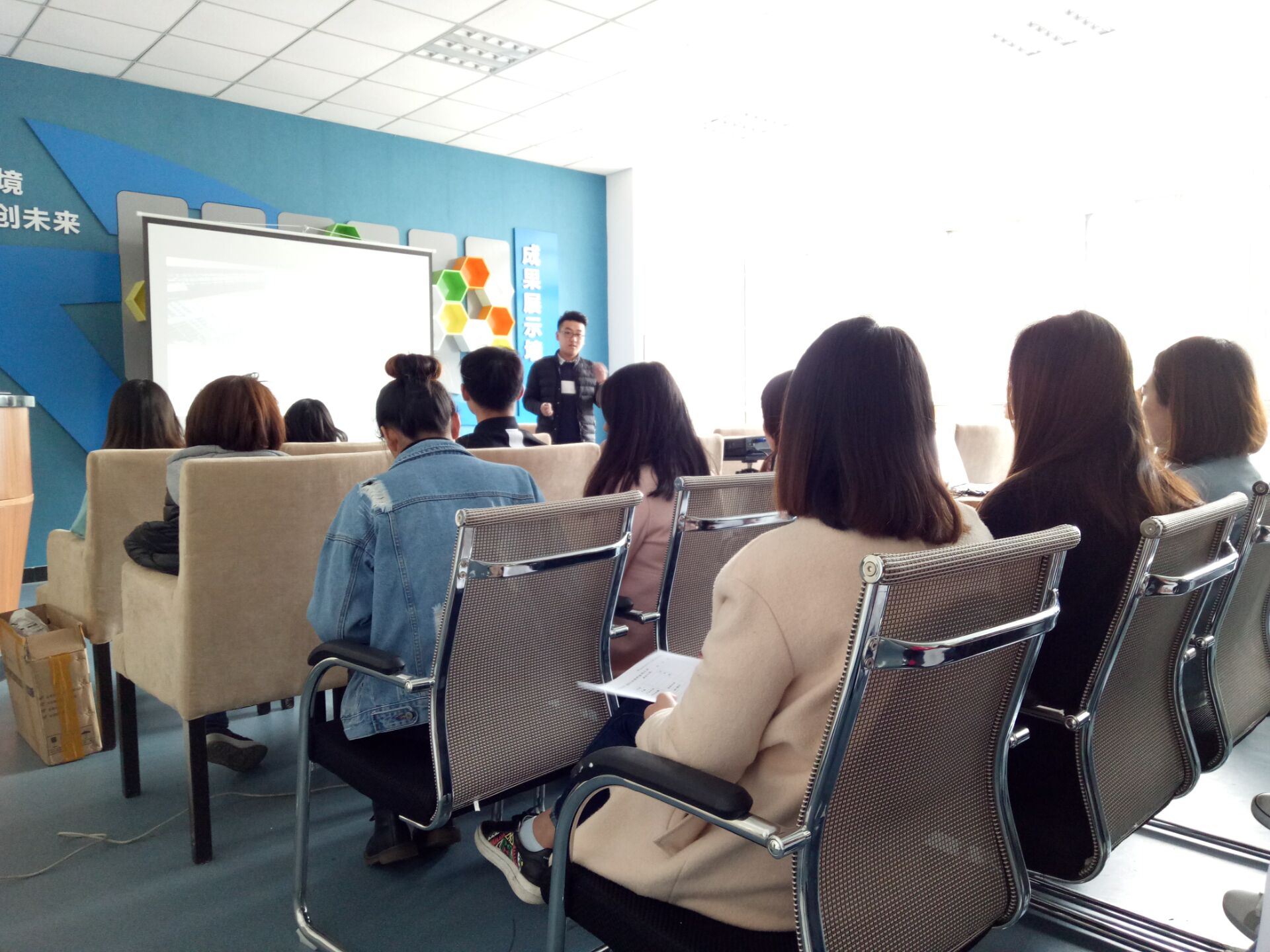 创业沙龙在张航老师轻松愉快的开场白中拉开了序幕。活动期间,张航老师一是以自创公司为例,简要介绍公司经营发展和其业务范围;二是抛出“为什么创业?如何创业?创业的利与弊?”三个问题,并作出解答;此外,张航老师还就大学生创业环境进行了深刻的分析,将各级政府对大学生创业提供的优惠扶持政策做了详细的介绍。“创新是创业成功的核心因素,也是企业发展的长驱动力”,张航老师以自身经验寓教于乐,教导创客们“创业没有失败,只有转型”。
