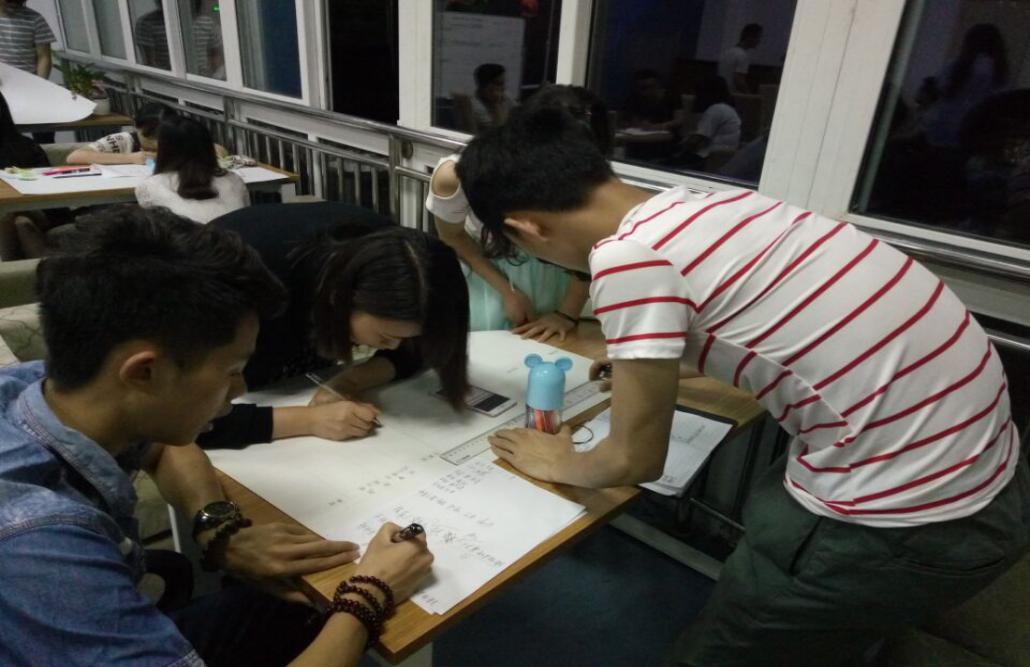 紧接着便进入了紧张忙碌的团队建设,这需要同学们完成五点:1.给团队取名,2.团队分工,3.价值主张,4.寻找痛点,5.解决方案6.创业地图制作环节,施海峰董事长鼓励大家最先完成的三个小组会有奖励。最后根据每个团队的建设方案每团队代表上台展示自己的团队。大家纷纷积极发表自己团队的想法,大家在碰撞中和平的交流。在这个过程中同学们在“寻找痛点”上理解有些偏差,但在施海峰老师的讲解中同学们重回正规成功的完成了这两个任务。