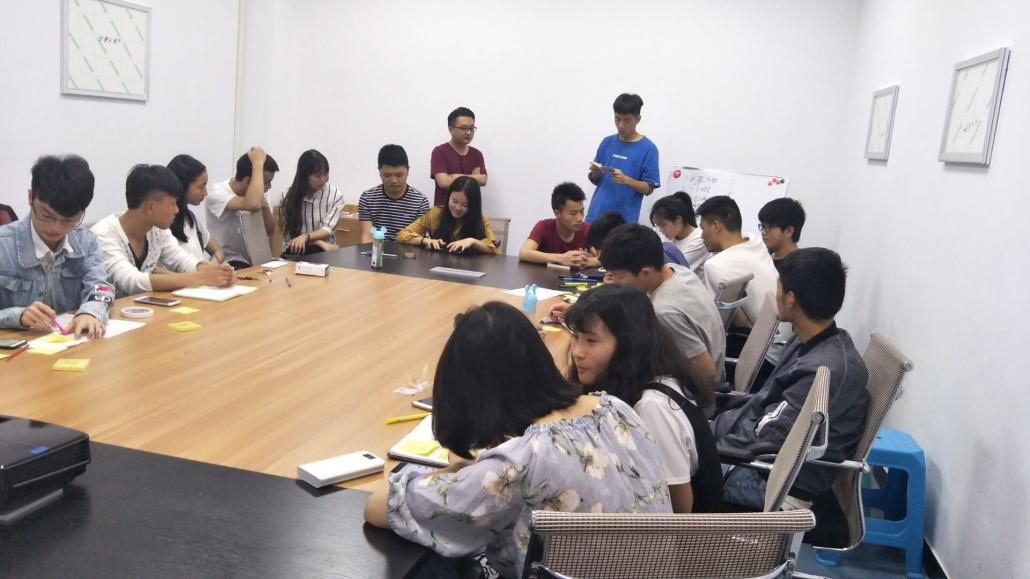紧接着便进入了第三个环节团队建设环节,这需要同学们完成五点:1.给团队取名,2.团队分工,3.价值主张,4.寻找痛点,5.解决方案。还有一个团队表格制作环节,施海峰老师鼓励大家最先完成的三个小组会有奖励。最后根据每个团队的建设方案每团队代表上台展示自己的团队。大家纷纷积极发表自己团队的想法,大家在碰撞中和平的交流。在这个过程中同学们有的相互合作,明确分工,最后在团队的努力下大家都先后完成了任务。