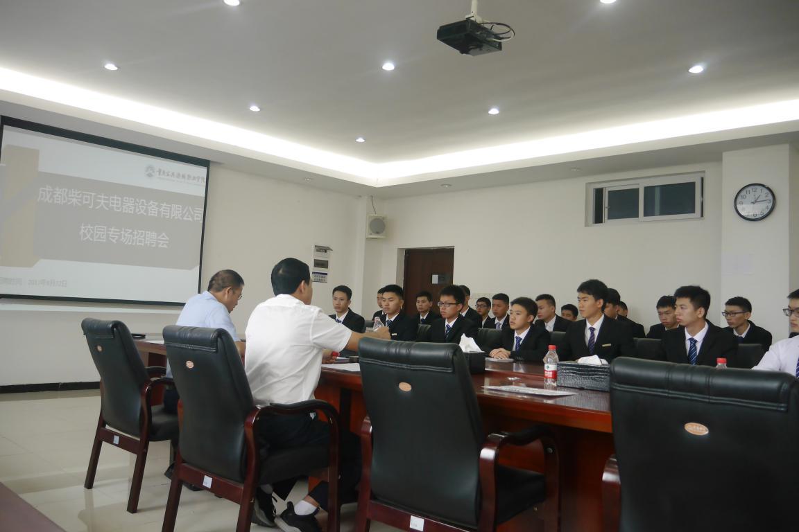 为切实做好我院毕业生就业工作,大力构建毕业生与用人单位的交流平台,我院于2017年9月22日下午在教学楼A402举办成都柴可夫电器设备有限公司专场招聘会。