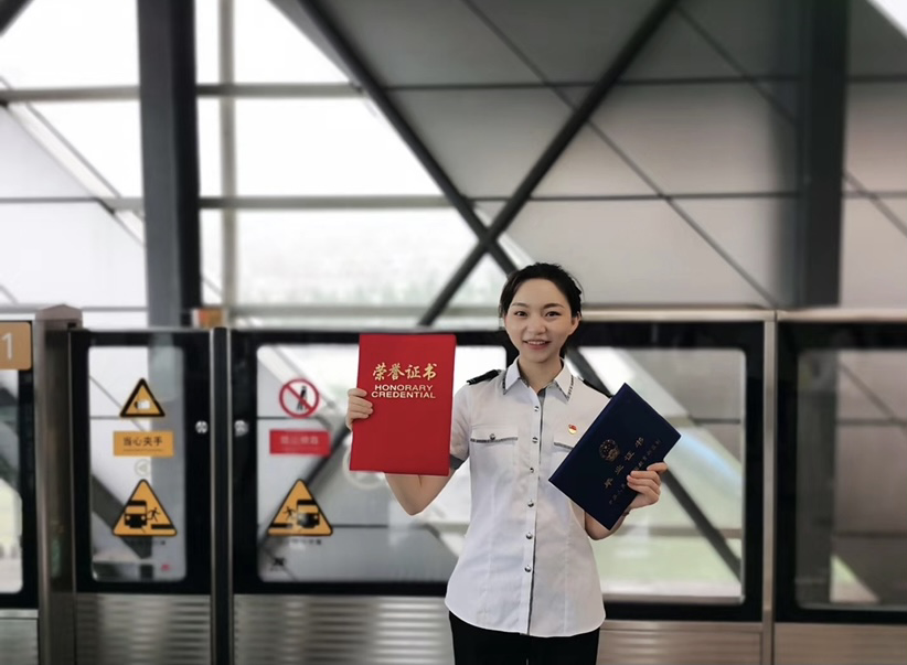 2020年8月,她成功拿到重庆轨道集团有限公司的offer。从校园到企业、从学生到员工,她很快适应下来。电动列车司机是挑战性比较大的岗位,业务技能要求高、工作强度大,男女比例失调,这些在她的眼里都不觉得有什么。无论干什么都要干得出色,在培训班里,面对复杂的车辆知识,白天认真听老师讲解,晚上把功课做足,查阅资料,理论成绩在培训班居前位。她积极参与集团部门各项活动,知识竞赛、好书分享等,努力把自己培养成多方位人才。作为轨道交通行业的一员,她乘风破浪,务实勤勉,敬业乐群,臻于至善,这是她作为一名电动列车司机的初心。作为轨道交通建设者,她积极发挥好“螺丝钉”精神,服从指挥,遵章守纪,熟练排障,平稳操作,工作扎实,刻苦学习,自觉把个人融入到党和人民的事业之中去。