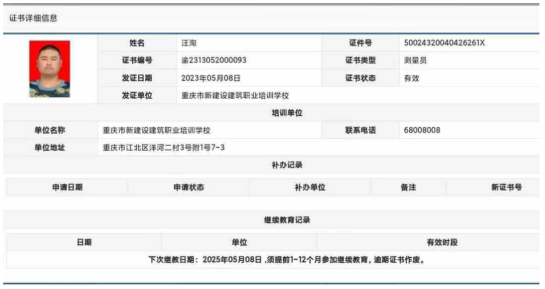 学生测量员证书