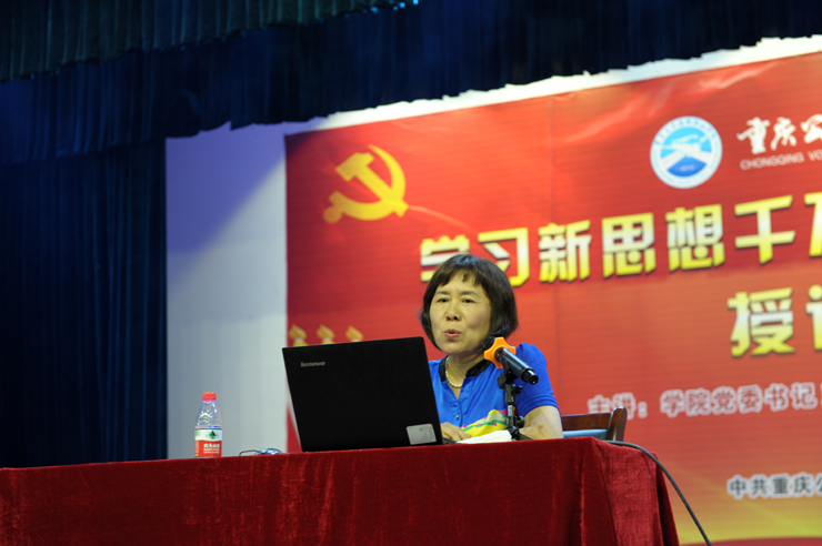 彭超书记在进行题为“学习贯彻习总书记教育思想争做‘四有’好老师”的授课中向全院教职工提出了“不忘初心,牢记使命,争做新时代有理想信念、有道德情操、有扎实学识、有仁爱之心的“四有”好老师。”的要求。她还在授课中指出,一切伟大的事业,都需要思想领航。站在新的历史起点上,我们要进一步提高政治站位,进一步深学笃用“习近平新时代中国特色社会主义思想”和党的十九大精神,把习近平新时代中国特色社会主义思想融入立德树人全过程、融入改革发展全过程、融入优质高职校建设全过程,撸起袖子加油干,为建设教育强国,为中华民族的伟大复兴作出新的贡献!