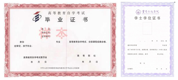 ●学位证书:自考生参加由重庆市学位委员会办公室组织的“成人高等教育本科毕业生申请学士学位外国语水平统一考试”且成绩合格,自获得自考本科毕业证书之日起三年内,可申请授予学士学位。