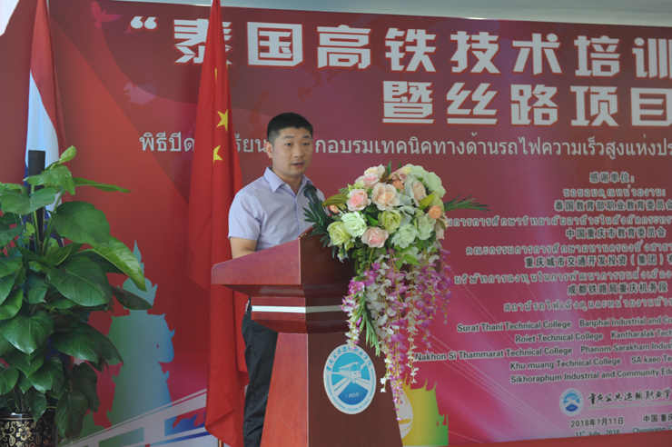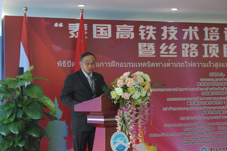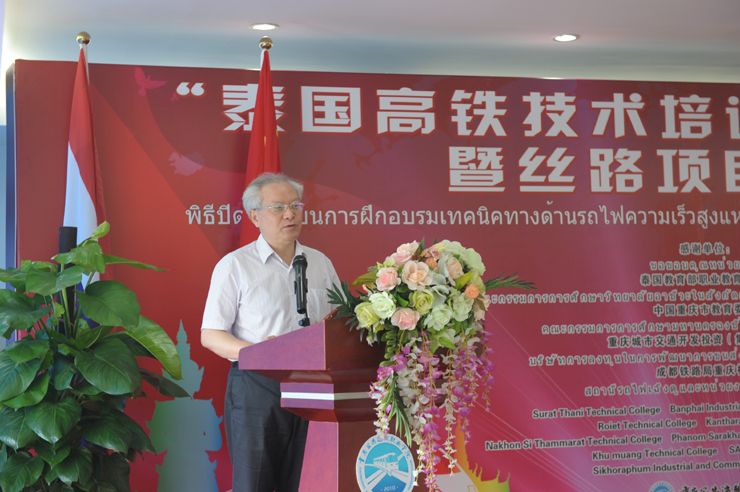 重庆教育国际交流协会会长胡斌在讲话中指出:澳门正规电子游戏平台依托大型国企办学优势,发挥自身铁道交通、城市轨道交通、城市公共交通专业特色,结合泰国急需培养铁道交通技术技能人才之需,举办“泰国高铁技术培训班”丝路项目,是落实中国教育部《推进共建“一带一路”教育行动》精神的具体举措,该项目的成功实施,总结出一套值得借鉴和推广的丝路项目工作经验,对促进重庆教育对外开放、服务内陆开放高地建设具有积极意义,对职业教育服务经济建设和产业发展具有示范引领作用。