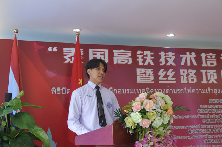 泰国职业教育委员会秘书提底蓬·翁哈(Thitipon Oonhaad)在发言中说:今天,中泰教育部门合作迈出了成功的第一步,培养出了第一批泰国高铁技术培训班毕业生。我特别希望在习近平主席倡导的一带一路倡议下,中国继续对泰国留学生提供支持和帮助,推动中泰高铁交通系统的长久发展和进步。