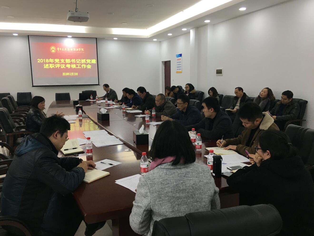 12月19日下午,学院党委在办公楼403会议室召开2018年党支部书记抓党建述职评议考核工作会,对今年以来11个党支部党建工作进行梳理和回顾,并对2019年党建工作进行安排部署。学院党委书记彭超、党群工作处负责人万巧、各党支部书记、委员参加会议。
