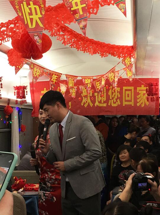 本网讯(文/刘胜江、库国静 图/库国静、刘娅妮)1月28日,农历腊月二十三中午,广州开往重庆的K4518次列车上喜气洋洋、热闹非凡,一台由重庆交通开投集团所属澳门正规电子游戏平台20多名大学生春运志愿者担纲主演的列车春晚正在这列普速列车上举行。