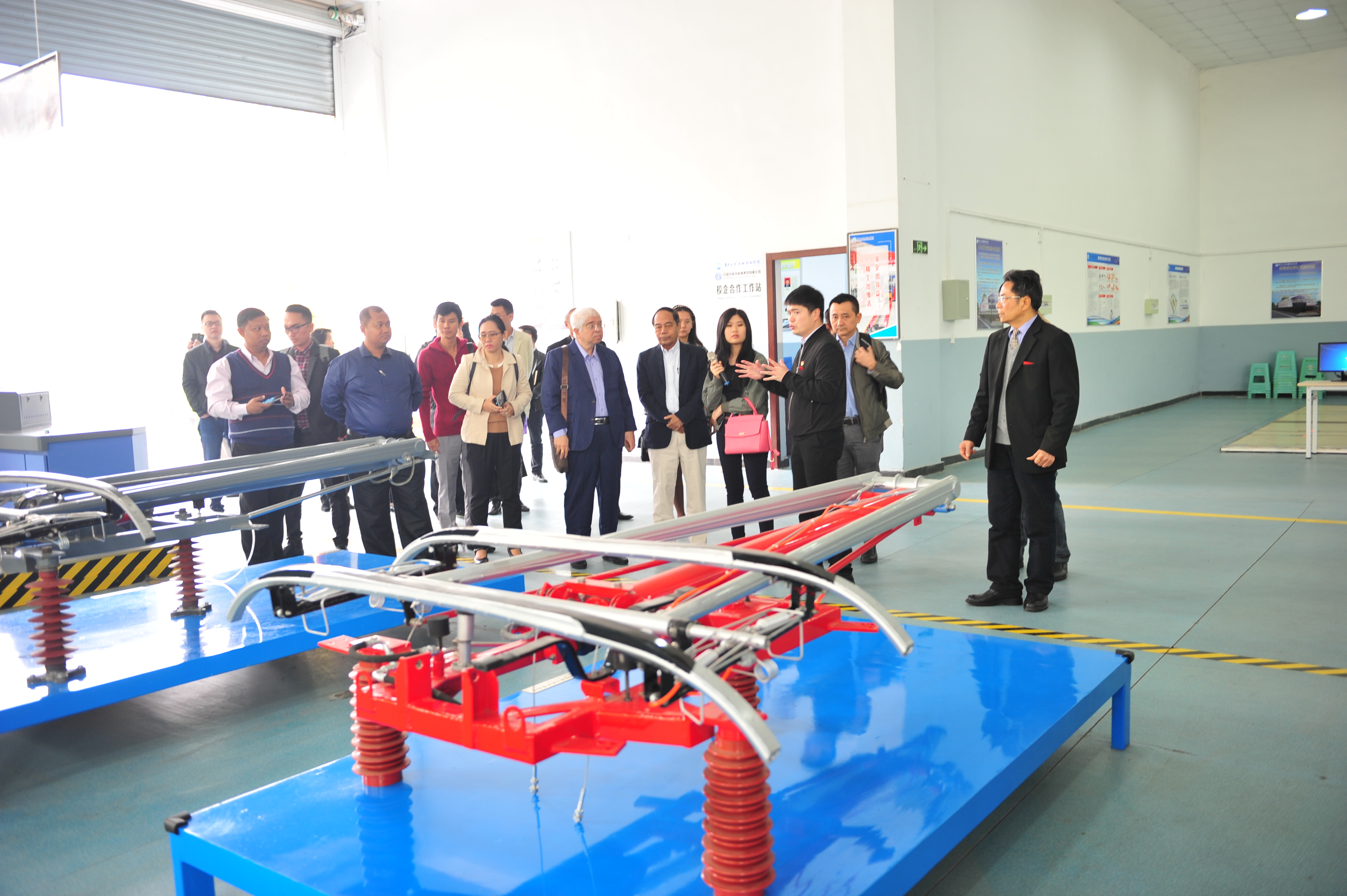 在校期间,考察团一行观看学院形象专题片,听取赵月望院长关于学院的办学情况,尤其是通过开放办学为“一带一路”沿线国家培养公共运输人才的情况介绍,实地考察学院城轨与高铁动车技术共享实训基地、智能公交调度培训中心暨智慧交通研究与协同创新中心,对学院的办学实力、特色给予充分肯定,在发挥优势为缅方培训公共交通人才等方面,与院方达成共识。