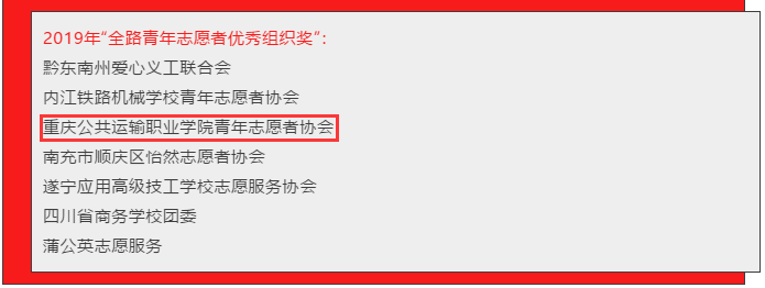 本网讯(文/文月工、彭余 图/库国静)全国铁道团委近日对2019年春运立功竞赛先进集体和优秀个人、志愿者优秀组织和优秀个人进行了命名表彰。重庆交通开投集团所属澳门正规电子游戏平台青年志愿者协会喜获2019年“全路青年志愿者优秀组织奖”,12人被评为“全路青年志愿者优秀个人奖”、107人获志愿服务一星级认证。