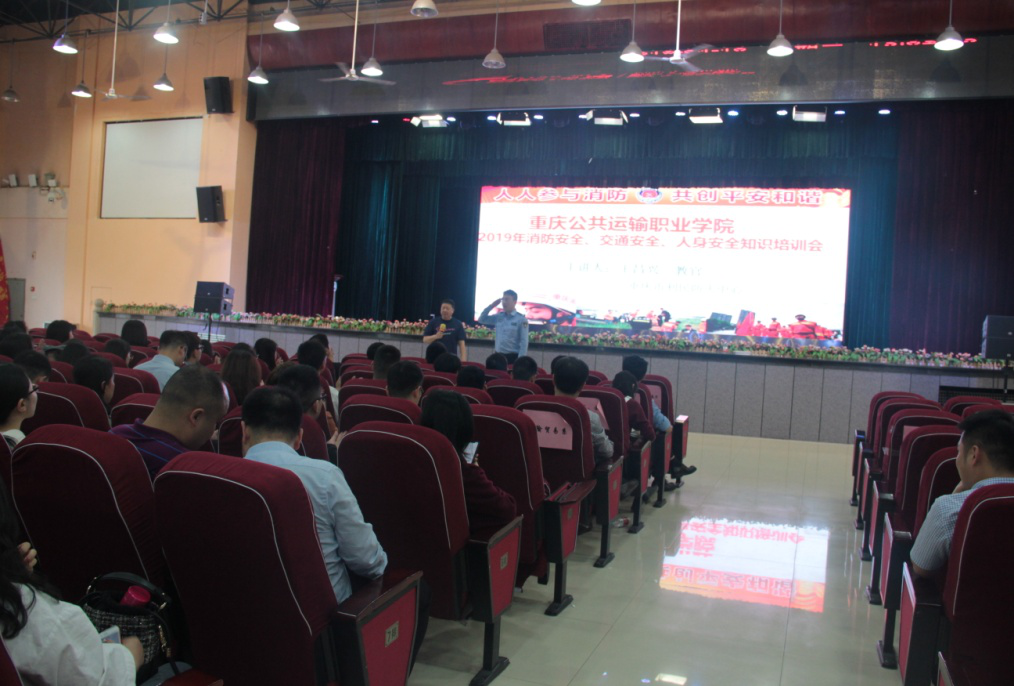当前位置:首页 > 新闻中心 > 学校动态 > 学校动态 学院举办安全知识培训 来源:学校动态发布时间:2019-04-12 11:03访问量: 本网讯(安保处李云龙) 为增强全院师生员工的安全意识,提高综合应急能力,推进“平安校园”建设,4月10日下午,学院邀请重庆市利民防火宣传培训中心工程师王昌兴教官,到学院开展安全知识培训。 培训过程中,王昌兴结合对近年全国典型火灾、交通案例,从火灾的发生、蔓延以及如何报警、如何利用灭火器进行初期火灾扑救、火场逃生自救的技巧等方面,进行详细讲解,对消防安全管理中容易出现的隐患进行深入分析。 全院近400多名教职员工参加培训。