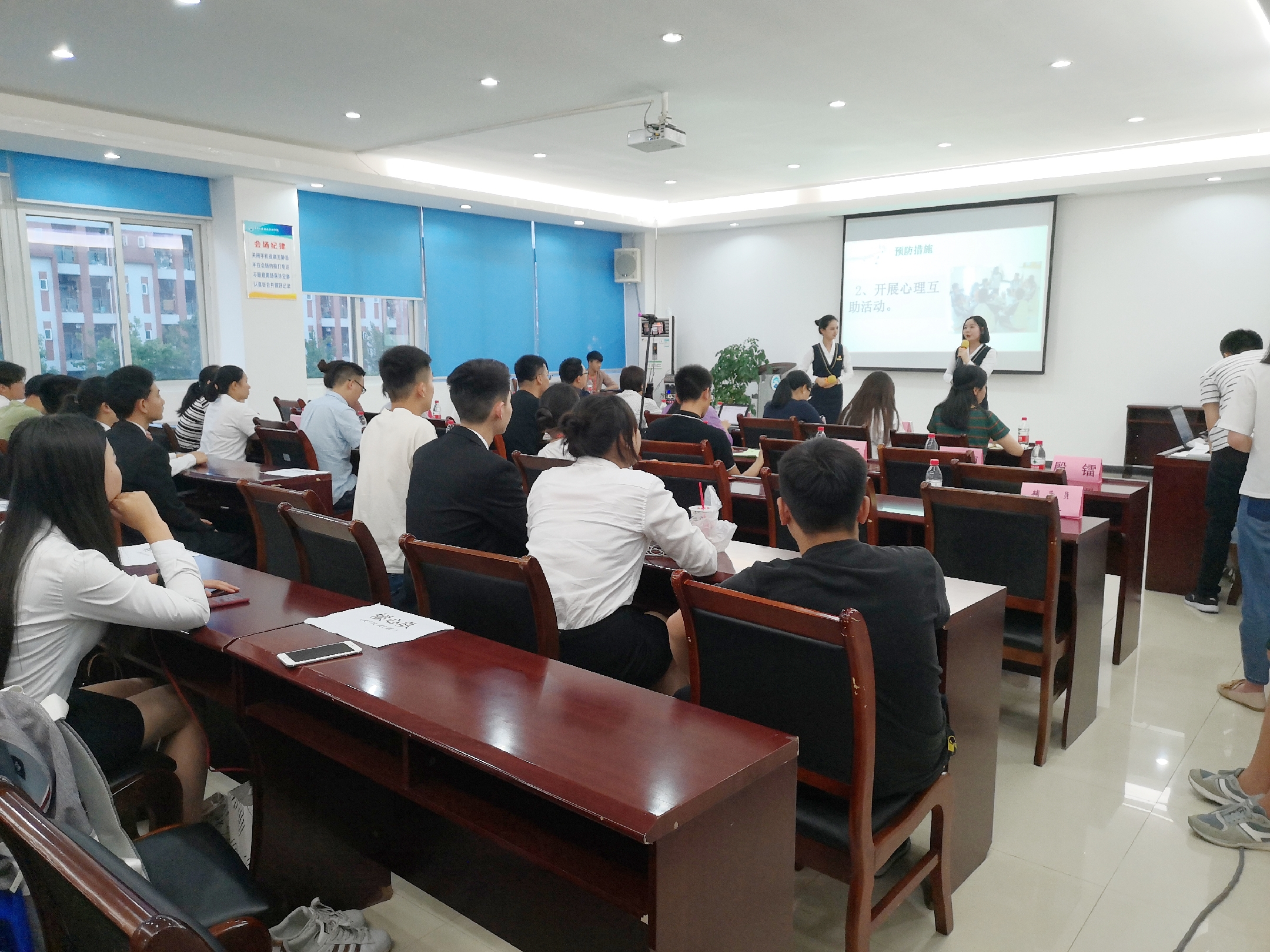 共有由系部赛推选出的12支优秀学生团队参加最后阶段比赛。活动中,各参赛队或以案例分析、情景表演等表现方式还原了当代大学生遇到的种种心理问题,或用声情并茂的演讲解说、课堂讲授等教学手法讲述应如何预防身心疾病。