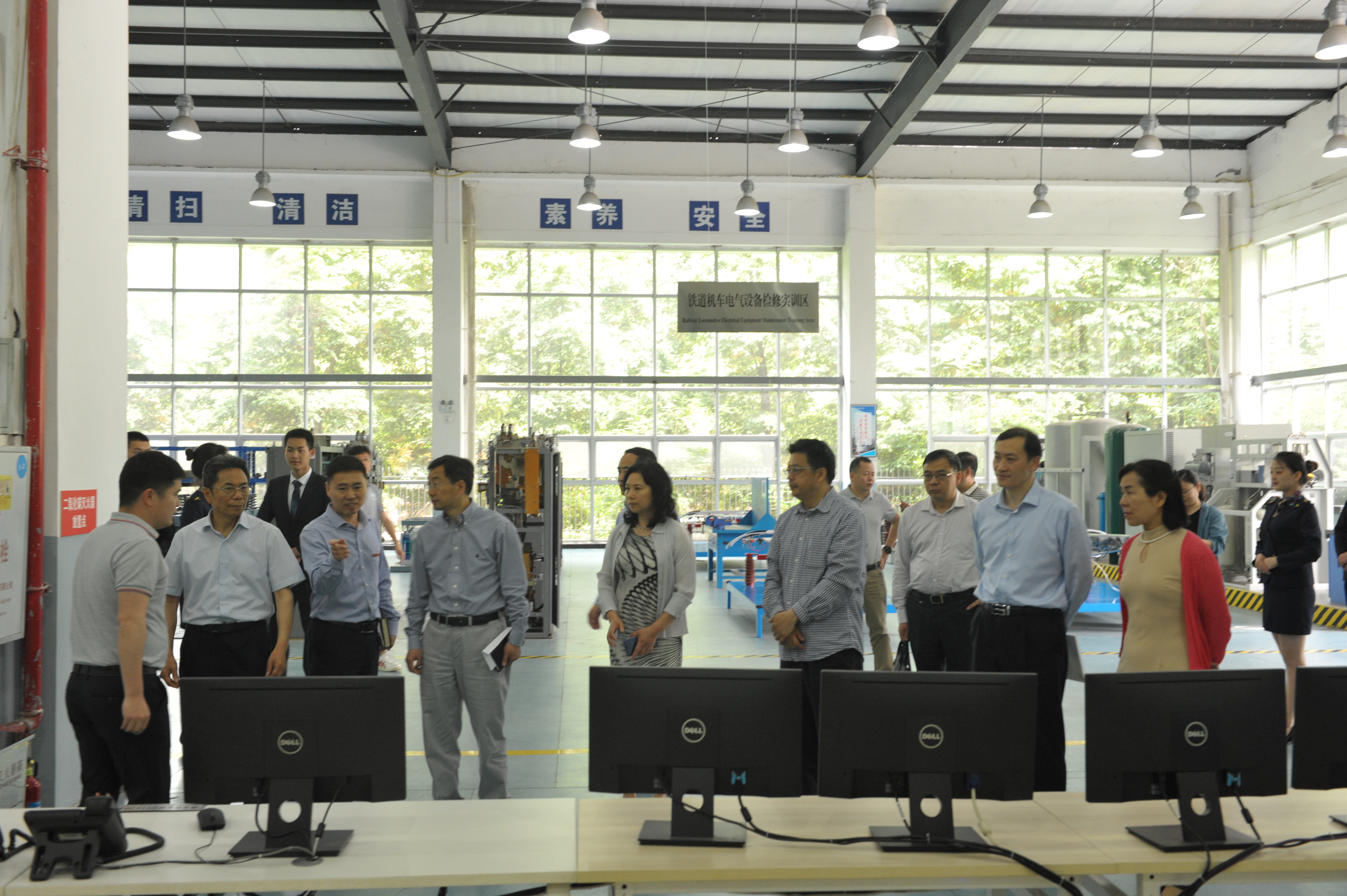 在校期间,申少君一行听取了重庆交通开投集团副总经理蔚成波、重庆运输职院主要领导相关工作汇报,到智慧交通研究与协同创新中心,实地考察全国首个由公交企业与高职院校联合开发的智能公交调度与培训系统,听取从系统设计到软件开发的过程介绍,观摩车载监控、运营调度、客运大数据自动统计等功能演示。到城轨与高铁技术共享实训基地,实地考察虚拟仿真实训中心,查看动车组综合检修、城市轨道交通信号控制等20余个实训室(场),现场体验轨道(铁道)模拟驾驶,观摩城市轨道交通运营车辆调度沙盘演练。