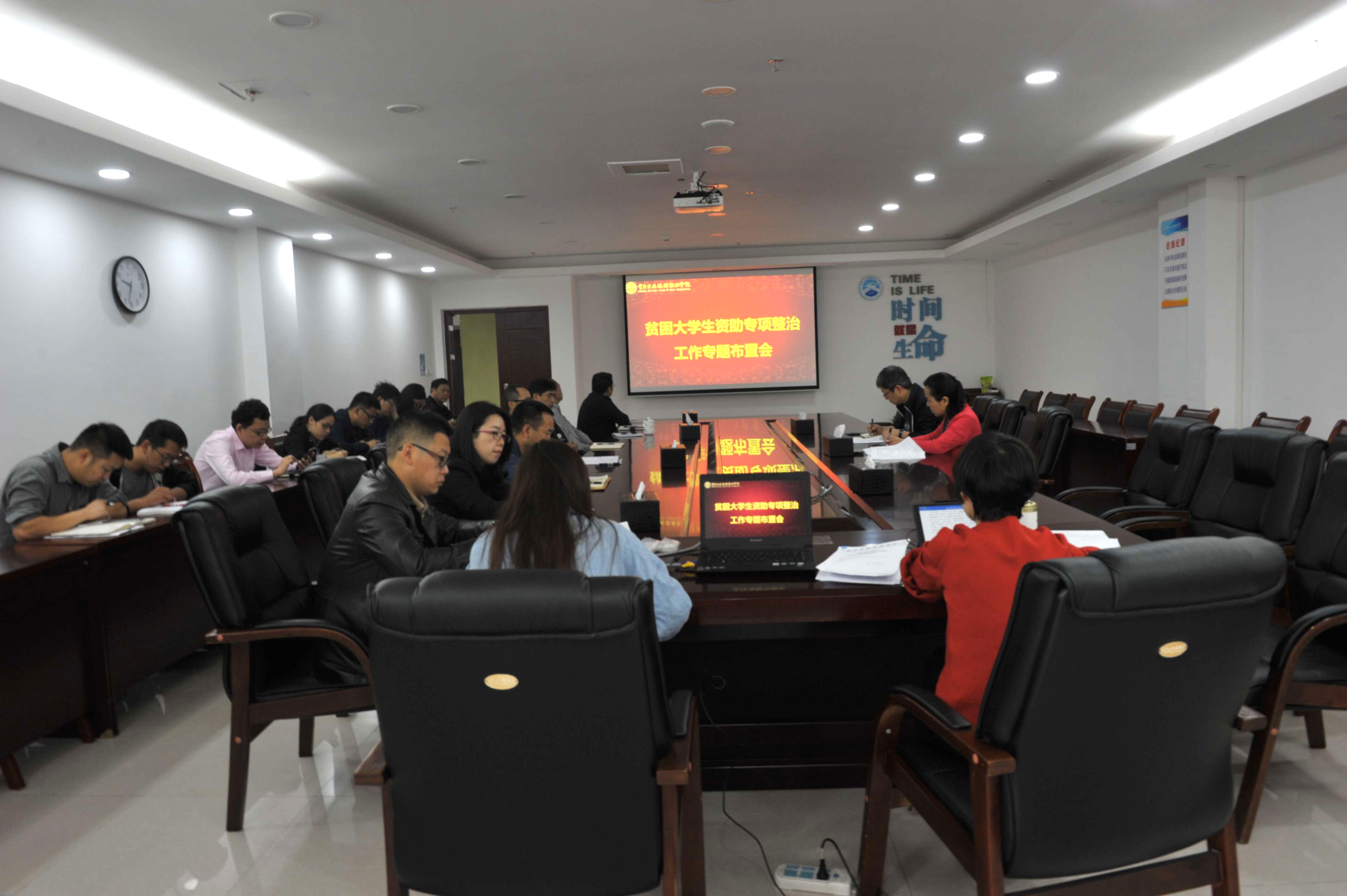 会上传达市委教育工委“贫困大学生资助专项整治工作推进会”精神,从提高政治站位、严格责任落实、全面落实政策、建强工作队伍、健全工作机制等方面,对学院贫困大学生资助专项整治工作任务进行部署。