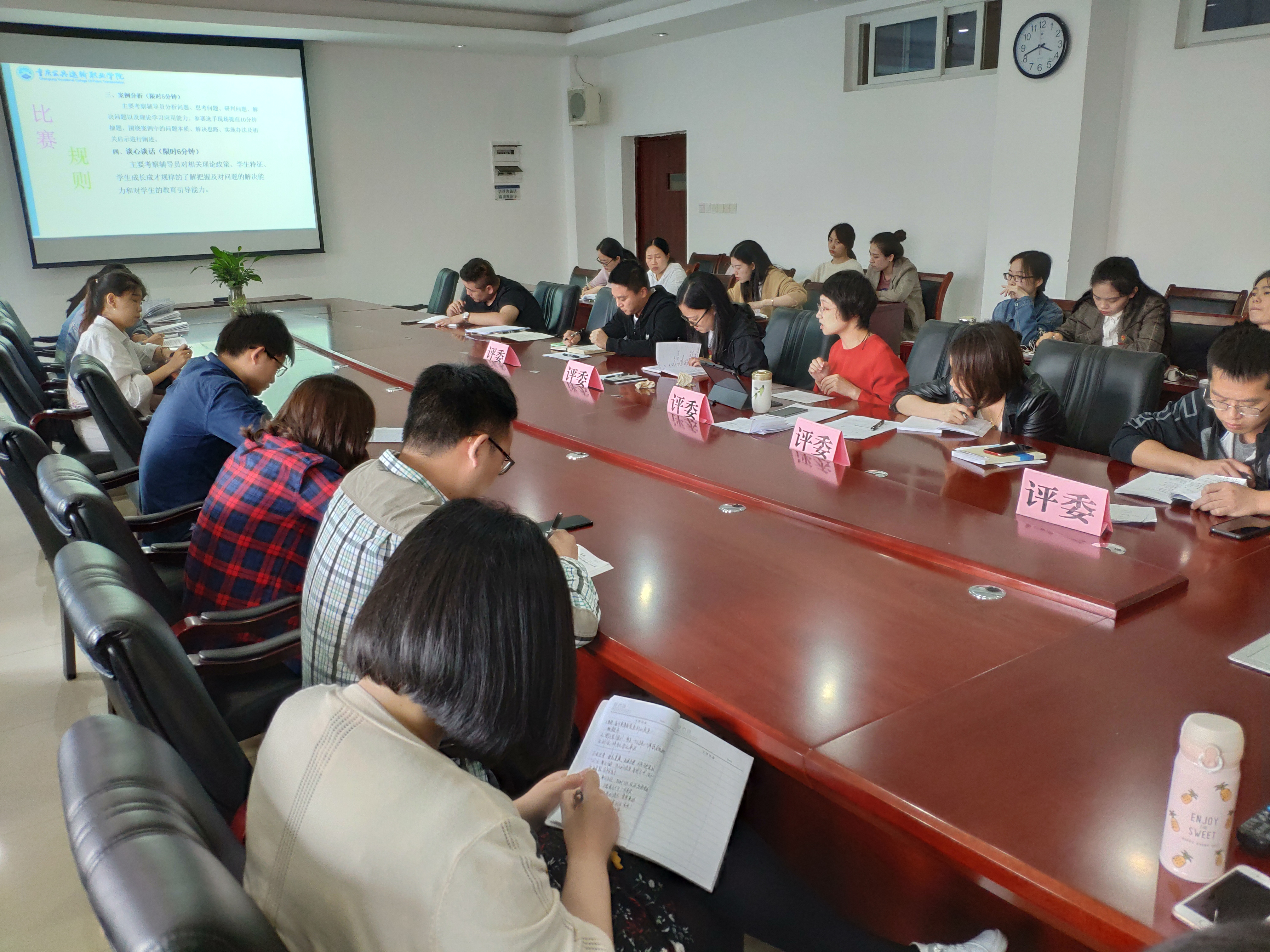 比赛评审由学院学生处负责人、各系学工办主任担任,各系支部书记、全体辅导员到场观摩比赛。