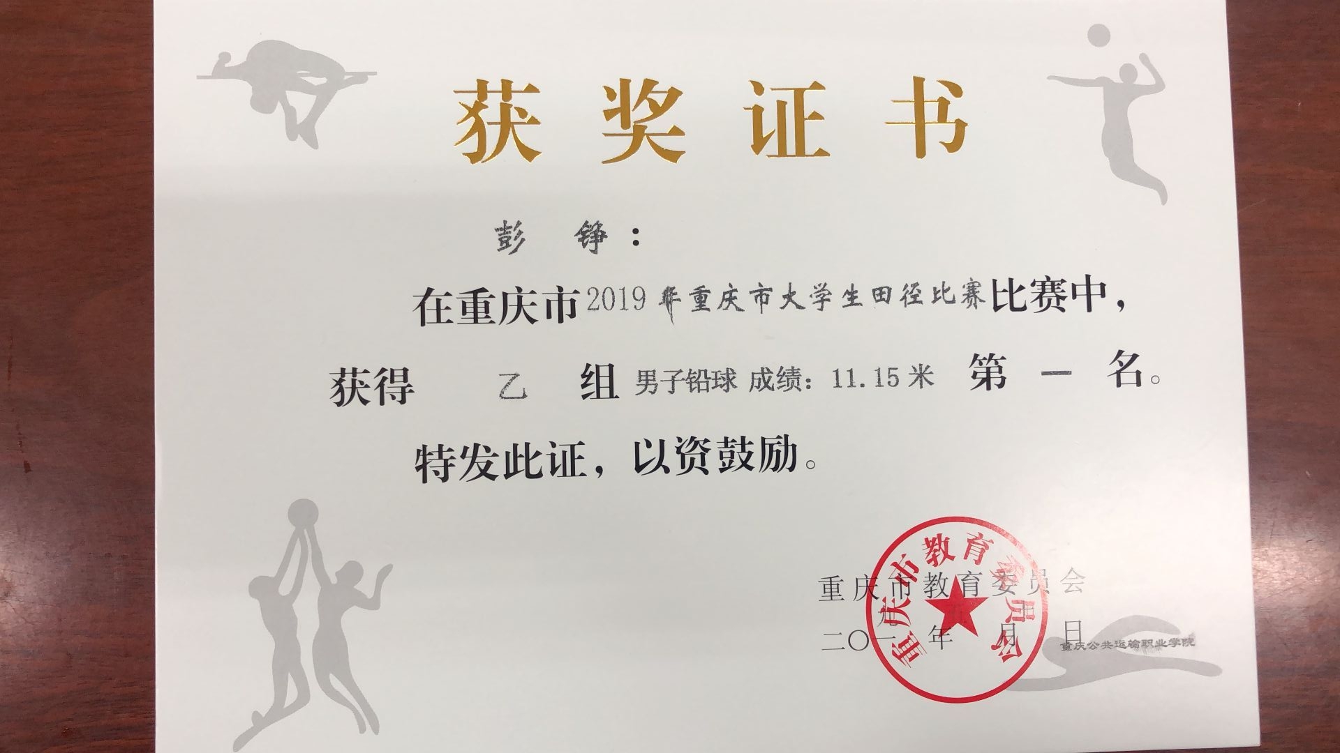 据了解,学院共选派22名运动员,在人文艺术系体育教科研团队刘震、刘衡、金雅倩老师的带领下,参加15个项目的比赛。经过激烈角逐,轨道车辆与机械系轨道车辆专业1804班赵梦雪摘得女子跳远冠军,轨道车辆与机械系轨道车辆1810彭铮摘得男子铅球冠军,运输贸易系铁道运营专业1802班季颖同学获得男子跳高第二名,轨道车辆与机械系铁道机车专业1804班张海朋同学获得男子1500米第三名,赵梦雪、李镜宇、杨昌静、张颖4名同学获得4×400米第三名,另获比赛其他四到八名若干。刘震、刘衡、金雅倩老师被评为重庆市优秀教练员,王方川、张海朋、杨昌静、赵梦雪同学被评为重庆市体育道德风尚奖先进个人。