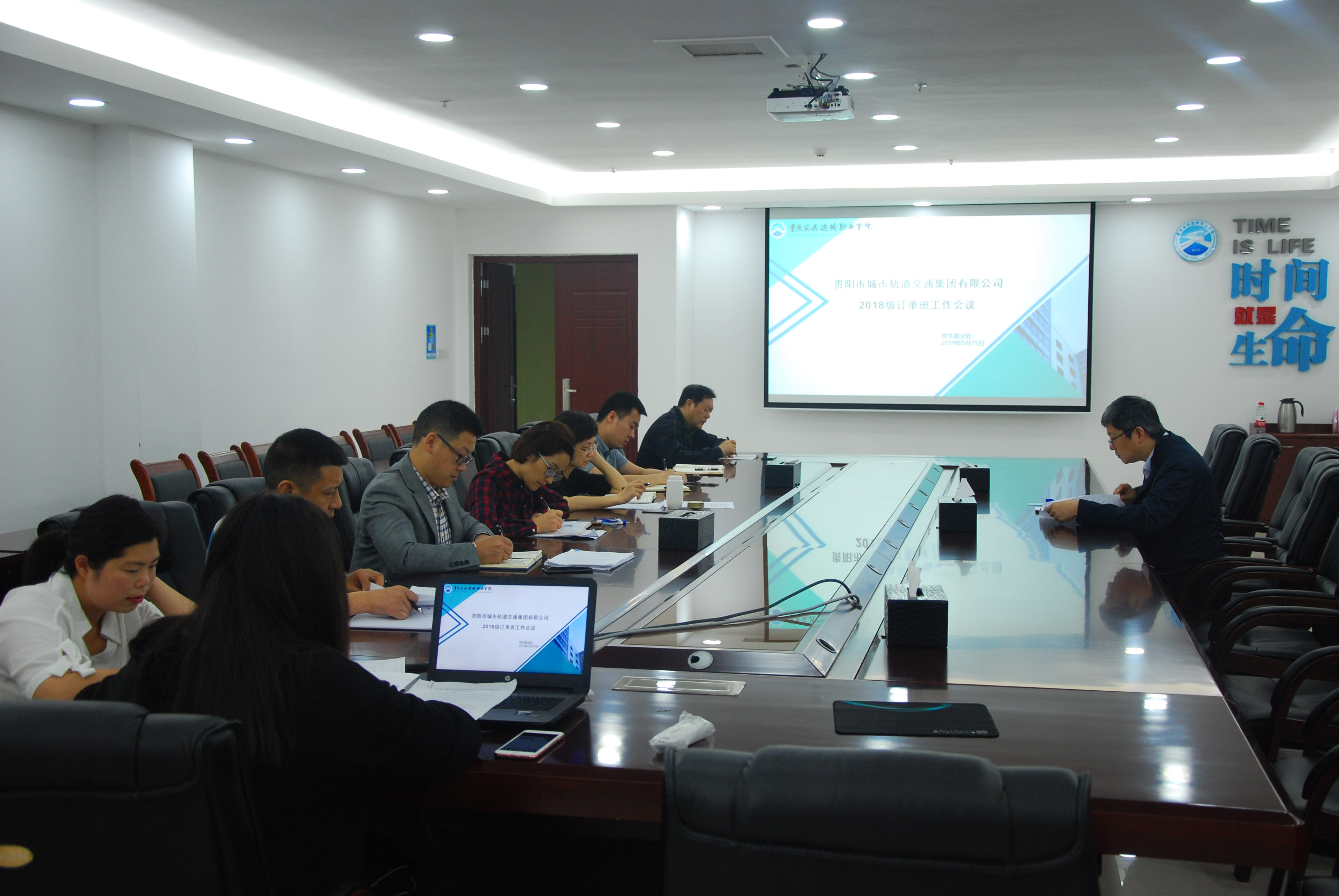 会议听取招生就业处关于2018级贵阳轨道订单班的相关情况汇报。会议要求,要按照企业相关工作函件要求,认真做好订单班组班工作,对接企业行业标准优化订单班人才培养方案,落实规章制度,加强教育管理,确保订单班人才培养的高质量,实现企业、学校、学生、社会多方共赢。