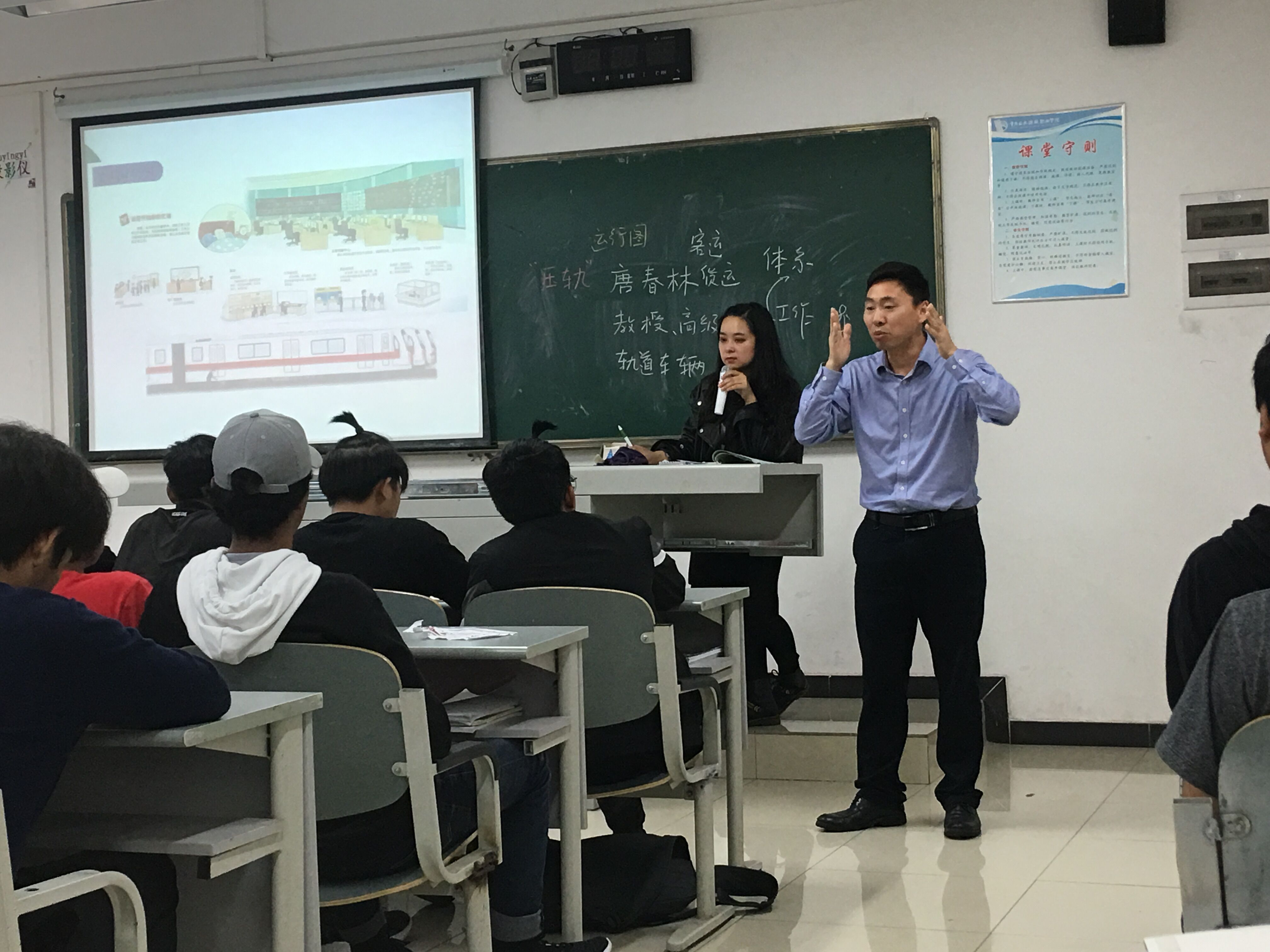 在集中宣讲环节,院长助理、教务处处长唐春林教授,在教学楼C栋205教室,为留学生们系统介绍将要学习的专业课程相关科目,尤其是铁路车辆驾驶、车辆基本构造、车组人员构成等专业基础知识。