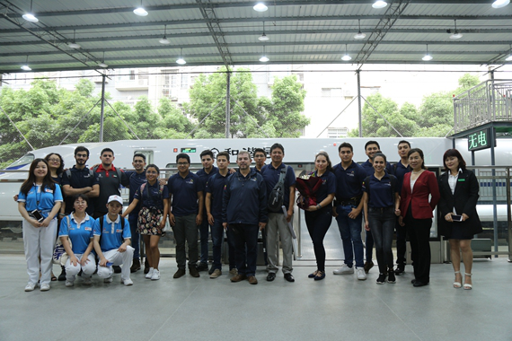 参观过程中,学校为外国友人送上了鲜花,以表达对他们的尊敬。在相关人员的陪同下,15名外国友人参观了学校汽车实训中心、轨道实训中心、汽车驾驶实训中心等,在各系部负责人及专业教师的讲解下,了解了学校在交通方面的成果,并在工作人员的安排下,亲身体验了一把“轨道驾驶员”的感觉。每到一处,外国友人无不惊叹于学校先进的教学设备和系统的教学体系,并多次伸出大拇指,赞叹重庆交通的魅力。