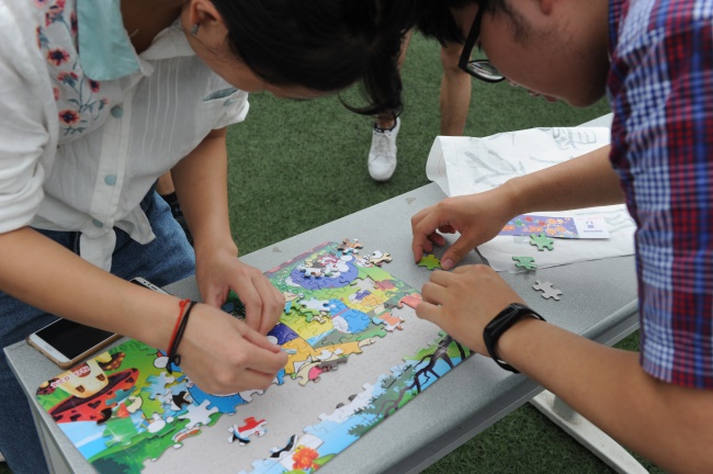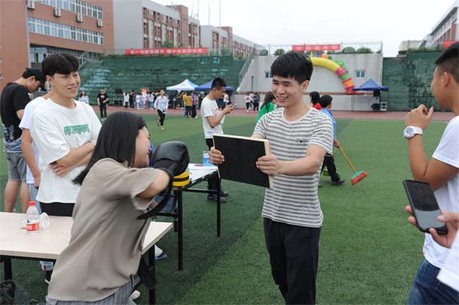 在游园会环节,各个社团策划的夹豆豆、转圈定点射门、诗词对接、听音识曲、汉服茶道知识问答、水上乒乓、你比我猜、成语接龙、听歌识曲等丰富多彩趣味盎然的闯关游戏,将“交通行业文化变迁”融入其中,吸引在场师生踊跃参与。