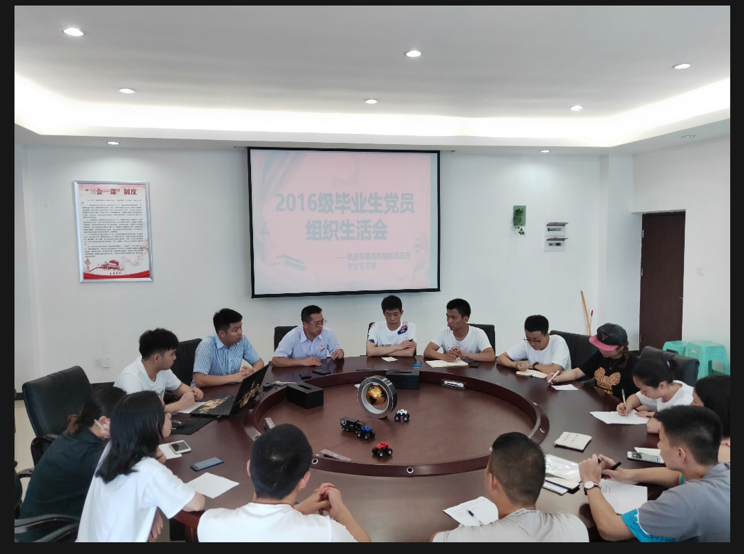 本网讯(党委宣传部李晗)为进一步引导毕业生党员发挥先锋模范作用,轨道车辆与机械系党总支近日在系部会议室,举行2019届毕业生党员离校教育专题组织生活会。