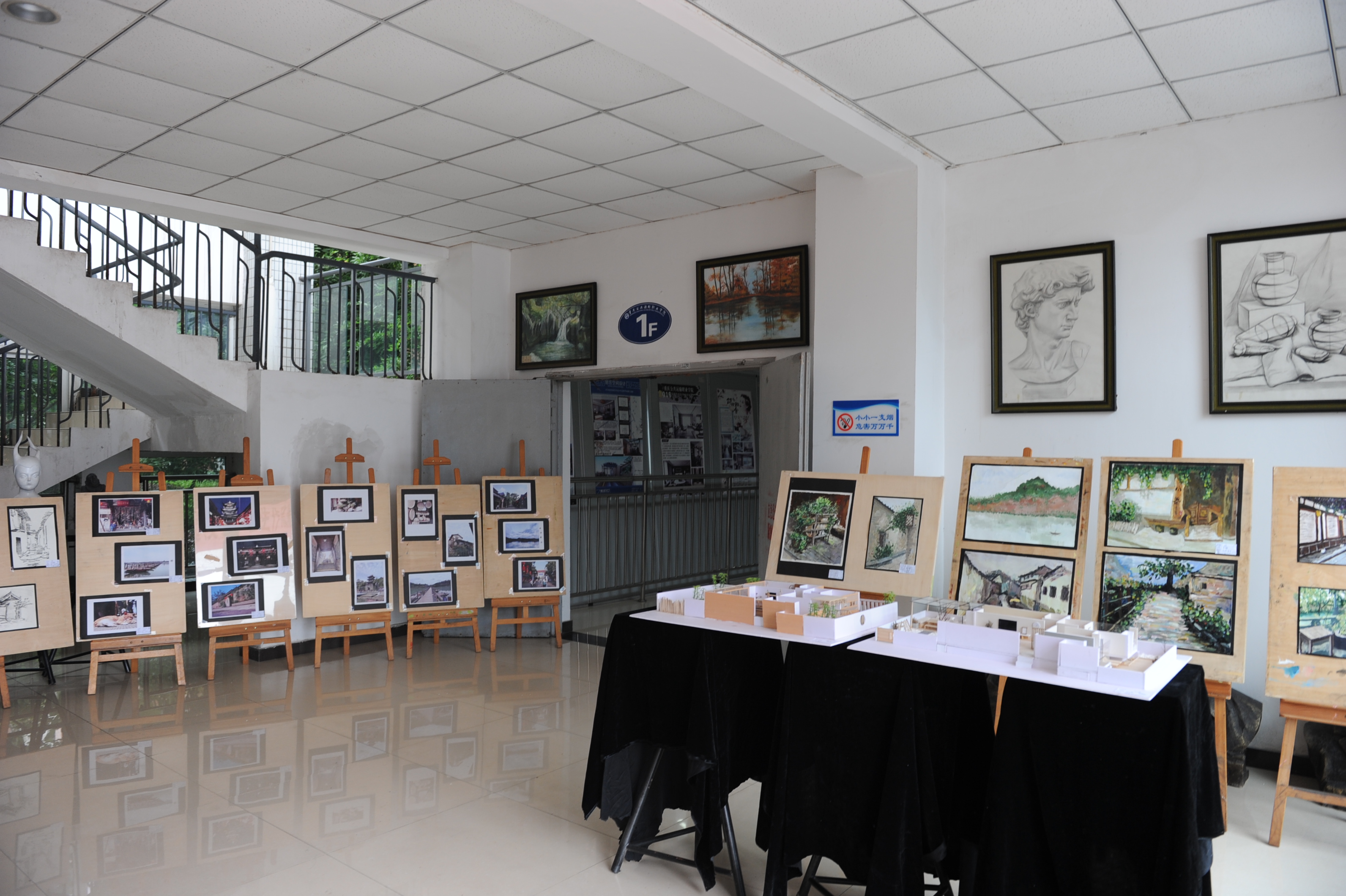 此次展览为人文艺术系艺术设计和环境艺术设计专业2019届毕业生毕业设计和2018级学生赴阆中开展实践教学写生作品。共展出作品120件,包括绘画类作品40件、摄影类作品40件、设计类作品32件,室内模型作品4件,手工作品类4件。