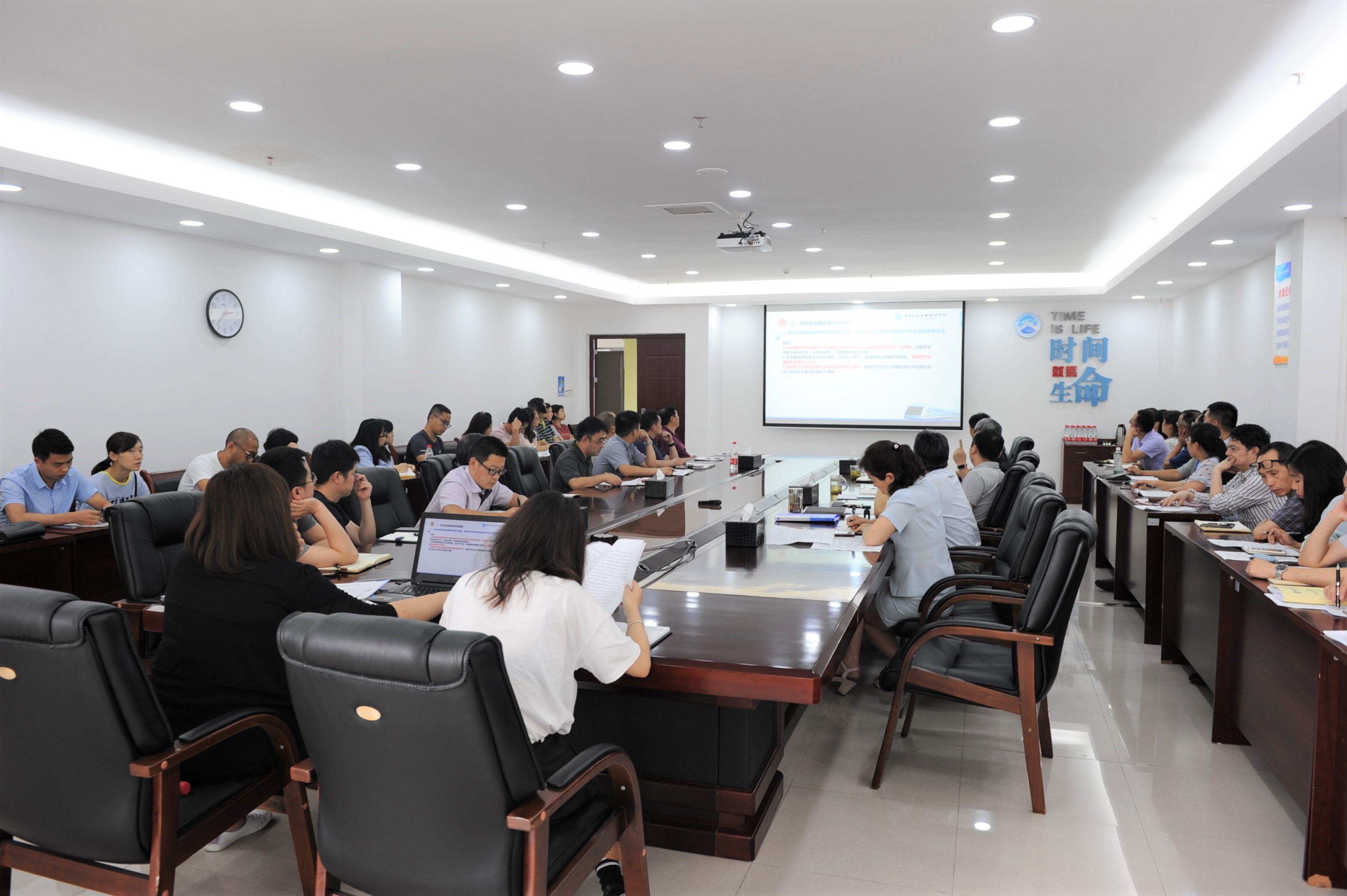 学院领导班子成员,教务处、人力资源处、教学督导室负责人,各系部、轨道高铁技术共享实训基地、各教研团队、各专业负责人,共49人参加会议。