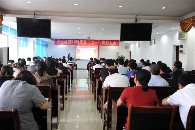 本网讯(文/党委宣传部李晗,图/张钦春)在党的98周年华诞即将到来之际,6月28日下午,澳门正规电子游戏平台在教学楼A栋403会议室召开庆祝建党98周年暨“七一”表彰大会。