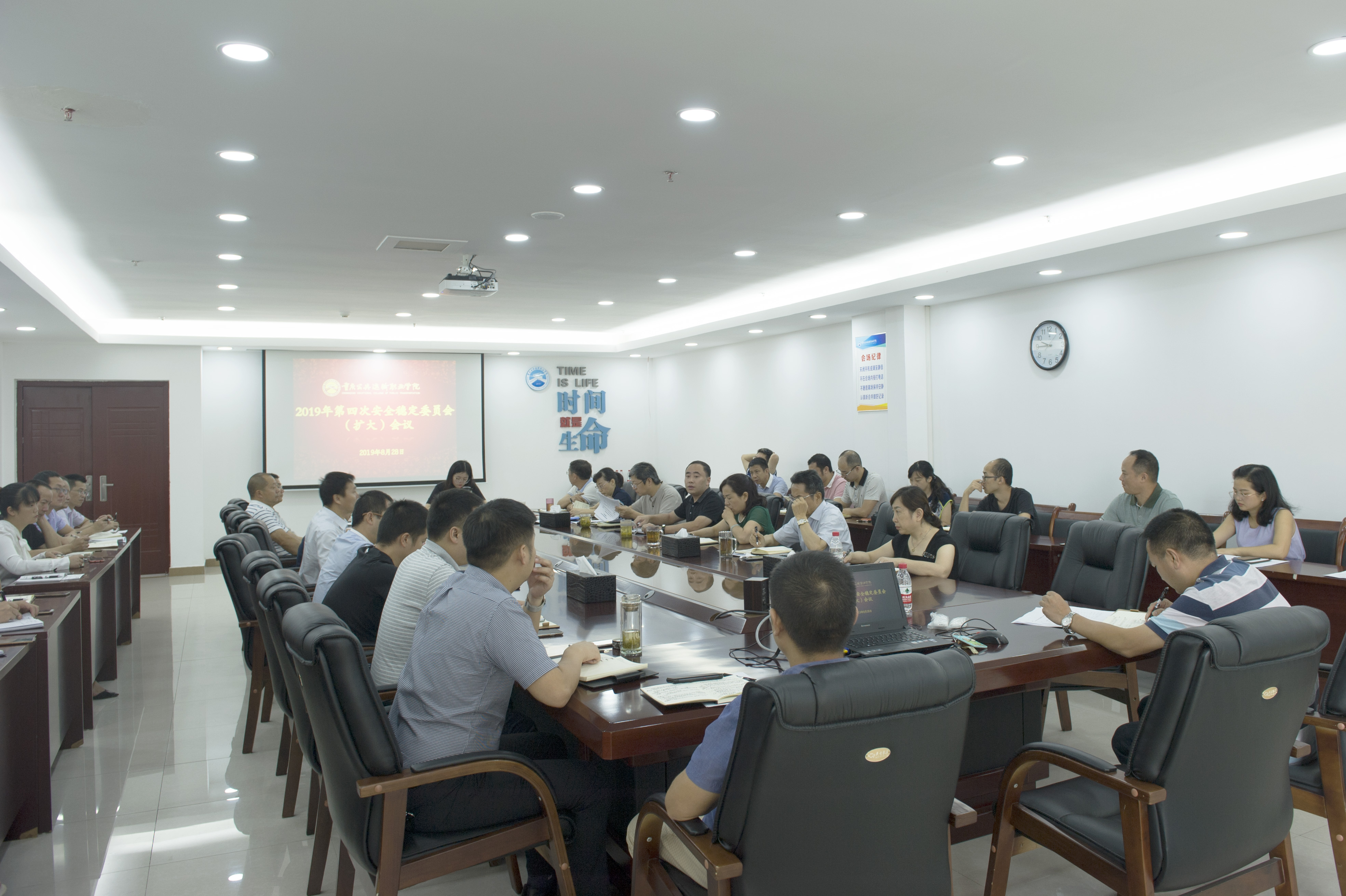会议传达集团安委会、经济形势分析会和市委教育工委关于印发《重庆市高校及委直属单位意识形态工作责任制考核办法》的通知等会议和文件精神,听取各单位、各部门新学期重点工作情况汇报,对暑期招生录取、社会实践、新校区建设等重点工作进行梳理总结,对新学期“三全育人”、课程思政、教学改革、队伍建设、铁路教育扶贫、新生军训、招生就业、学生管理、留学生培养、校企合作、成本控制、安全稳定、后勤保障等大项工作进行全面部署。