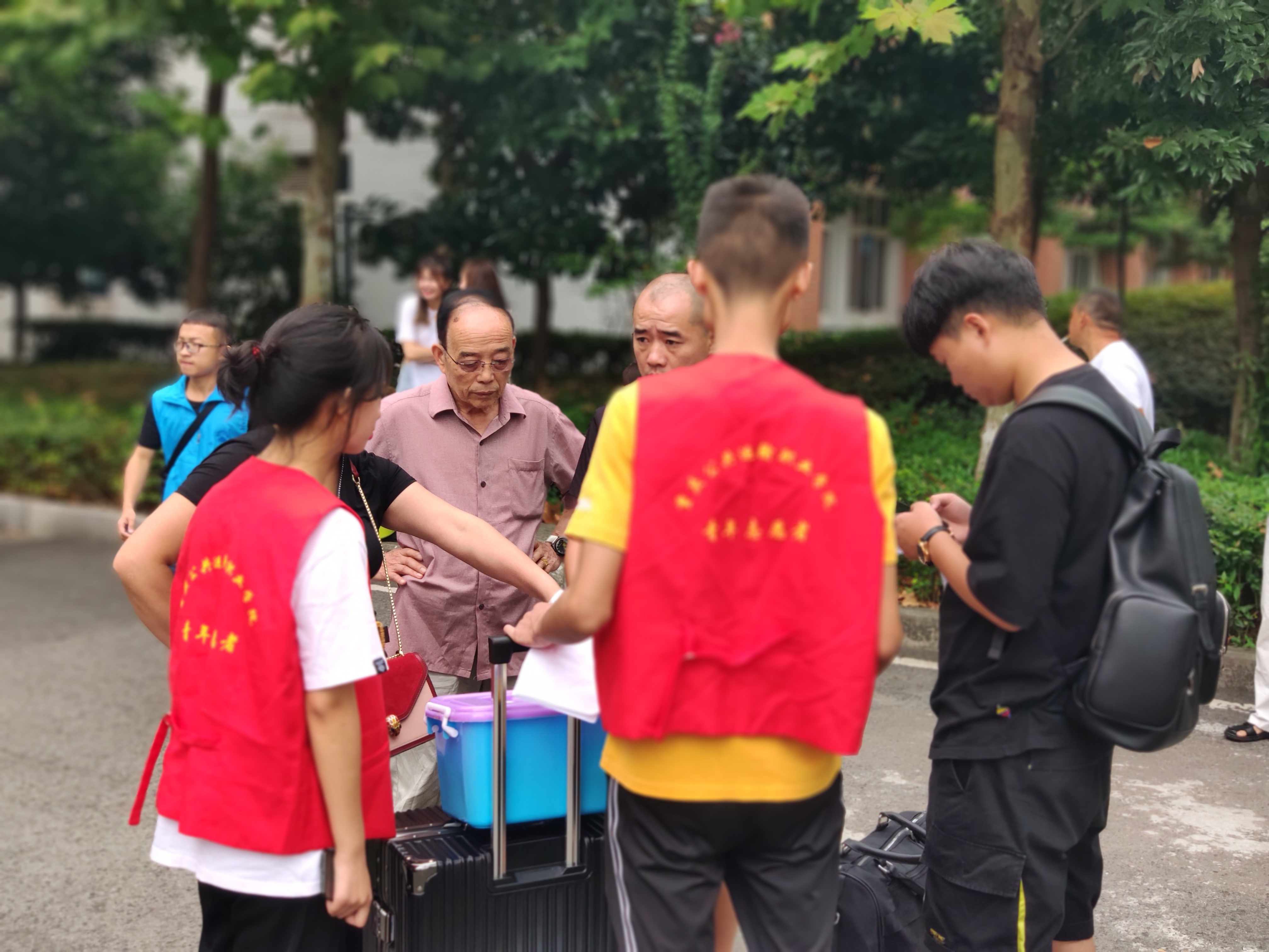 从早上8点开始,身着澳门正规电子游戏平台“青年志愿者”标记马甲的数百名学生志愿者,克服高温酷暑,在菜园坝火车站、重庆火车北站、陈家坪汽车站、红旗河沟汽车站、重庆西站、重庆南坪四公里枢纽站、江津双福汽车站等校外新生接待站点,和校内接待各站点,为来校报到的新生及家长提供全程、全方位的热情周到的服务。