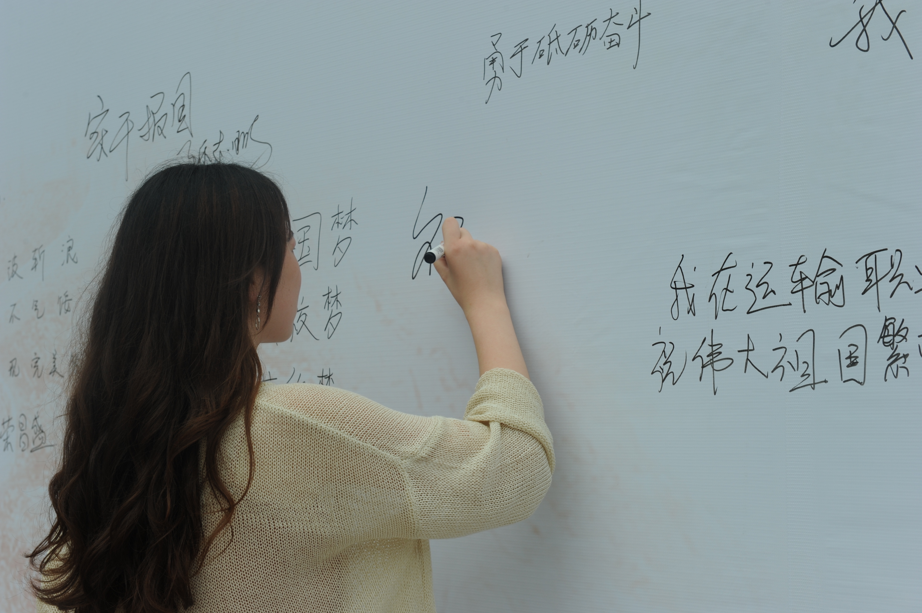 本网讯(文/党委宣传部李晗,图/彭露娇)为加强新生爱国主义教育,重庆交通开投集团所属澳门正规电子游戏平台在今年入学的2600多名新生中,广泛开展“祖国,我想对您说说心里话”活动,通过主题签名、主题宣言展示等形式,引导大家坚定“四个自信”,争做敢于有梦、勇于追梦、勤于圆梦的时代弄潮儿,以优异成绩庆祝中华人民共和国成立70周年。