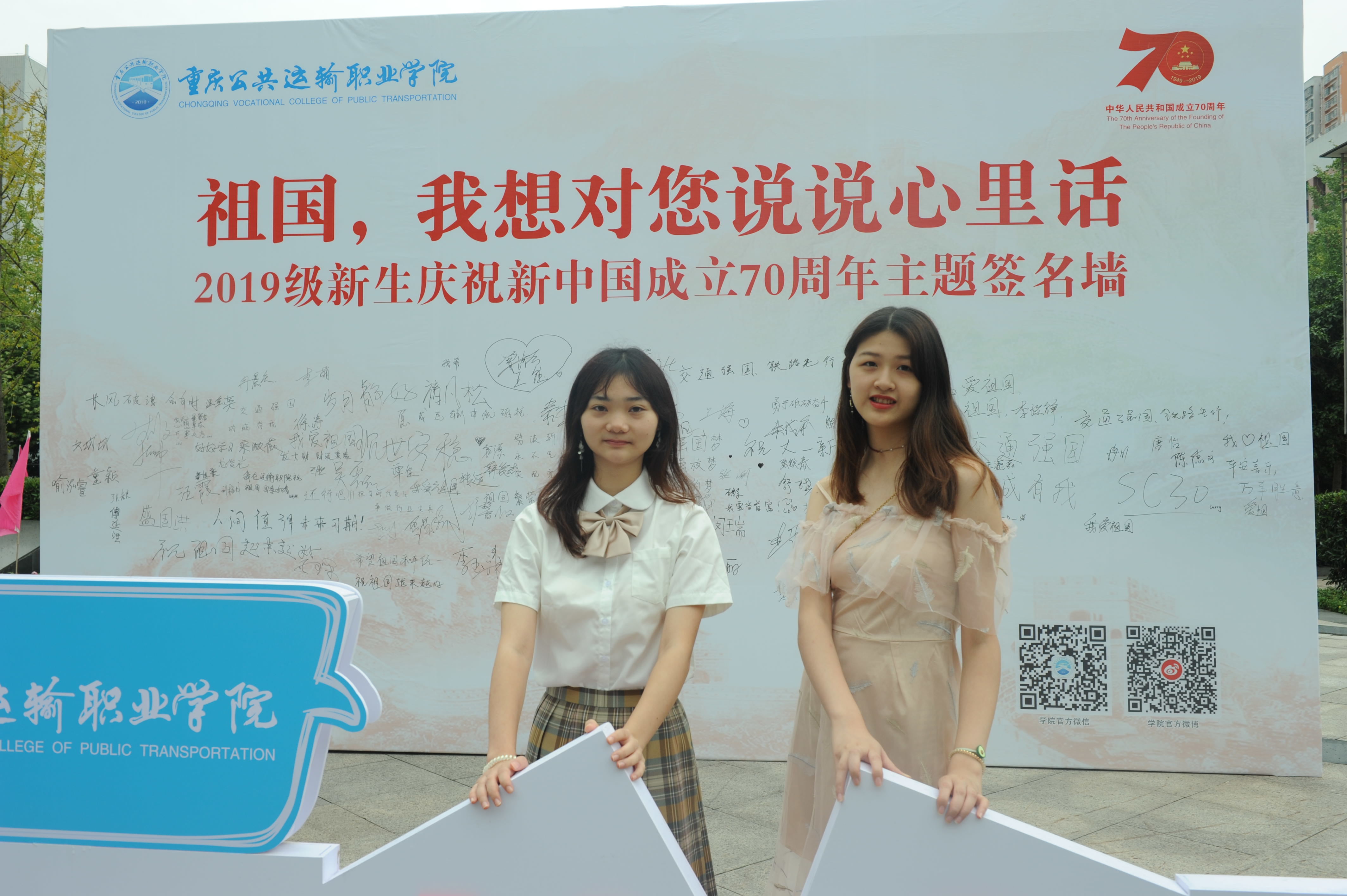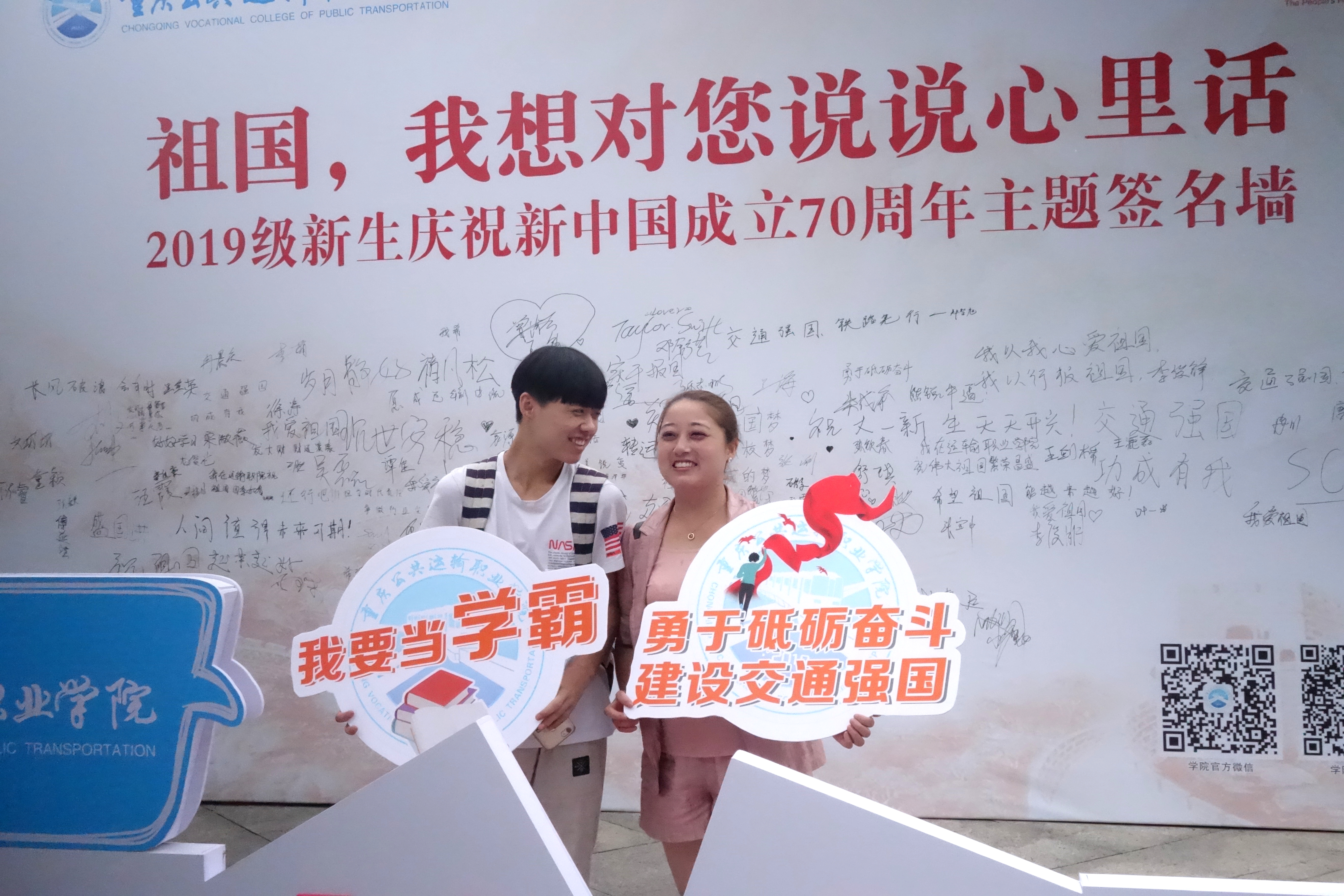 活动组织者还在暑假期间精心设计制作“祖国,我想对您说说心里话”摄影框,内容包括“我在运输职院,祝伟大祖国四季如春!”“我在运输职院,祝伟大祖国繁荣昌盛!”“担当时代责任,争做行业尖兵”“勇于砥砺奋斗,建设交通强国”“强国梦 强校梦 我的梦”“把小我融入祖国和人民大我”等重大主题,也包括“我要当学霸”“我要在运输职院读遍天下好书”“劈波斩浪·永不气馁·实现完美蜕变”等励志主题,在每位新生入校第一天,由志愿者引导他们根据自身实际选取一个主题摄影框,由学院大学生记者团的同学,为他们的大学生活留下难忘瞬间,展示重庆运输职院学子的良好精神风貌。