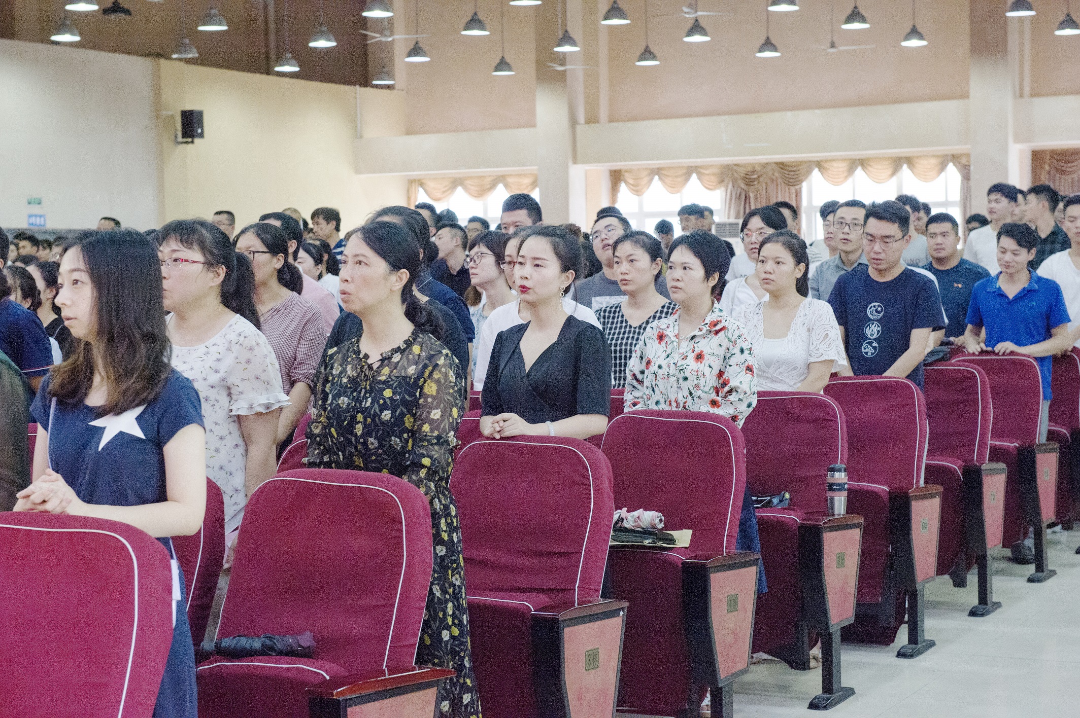 在会上举行的新进教职工入职宣誓仪式中,56名2019年新入职的员工用铮铮誓言,展示忠诚党的教育事业,扎根学院、建设学院、发展学院的决心和信心。