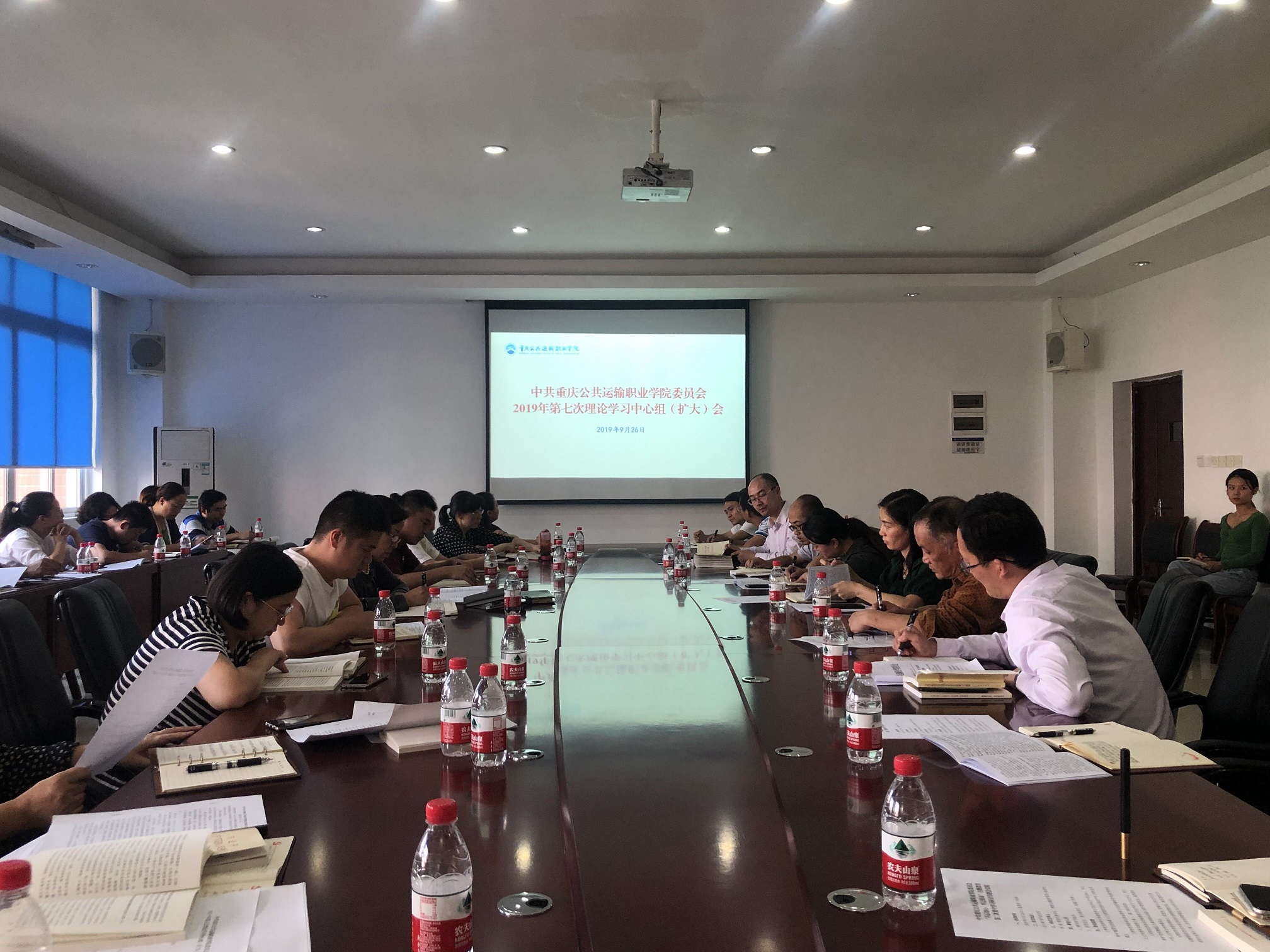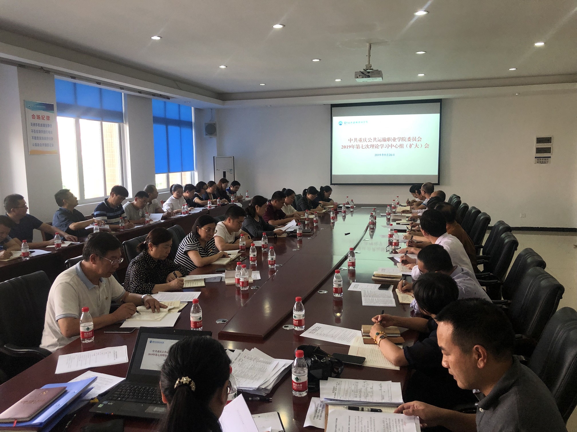 本网讯(文/党委宣传部文月工 图/李秊)根据工作安排,9月26日下午,重庆交通开投集团所属澳门正规电子游戏平台在教学楼A栋401会议室,以召开(扩大)会形式,组织党委中心组2019年第七次理论学习。