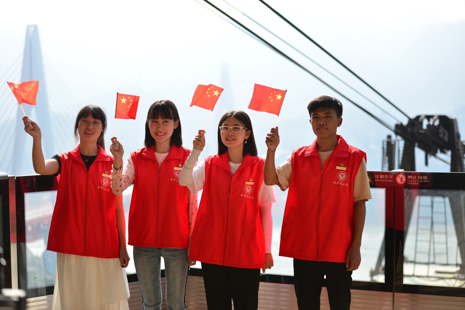 当前位置:首页 > 新闻中心 > 学校动态 > 学校动态 重庆运输职院学子参加长江索道国庆志愿服务 来源:学校动态发布时间:2019-10-10 14:22访问量: 本网讯(文/校团委彭余,图/库国静)国庆长假期间,重庆长江索道接待游客超过14万人次,创下了长江索道接待游客数量历史新高。为配合做好长江索道景区服务工作,重庆交通开投集团所属重庆运输职院的11名青年学子,放弃国庆节假期,为来往山城的游客提供热情周到的志愿服务,展示重庆运输职院学子良好形象,以实际行动庆祝中华人民共和国成立70周年。