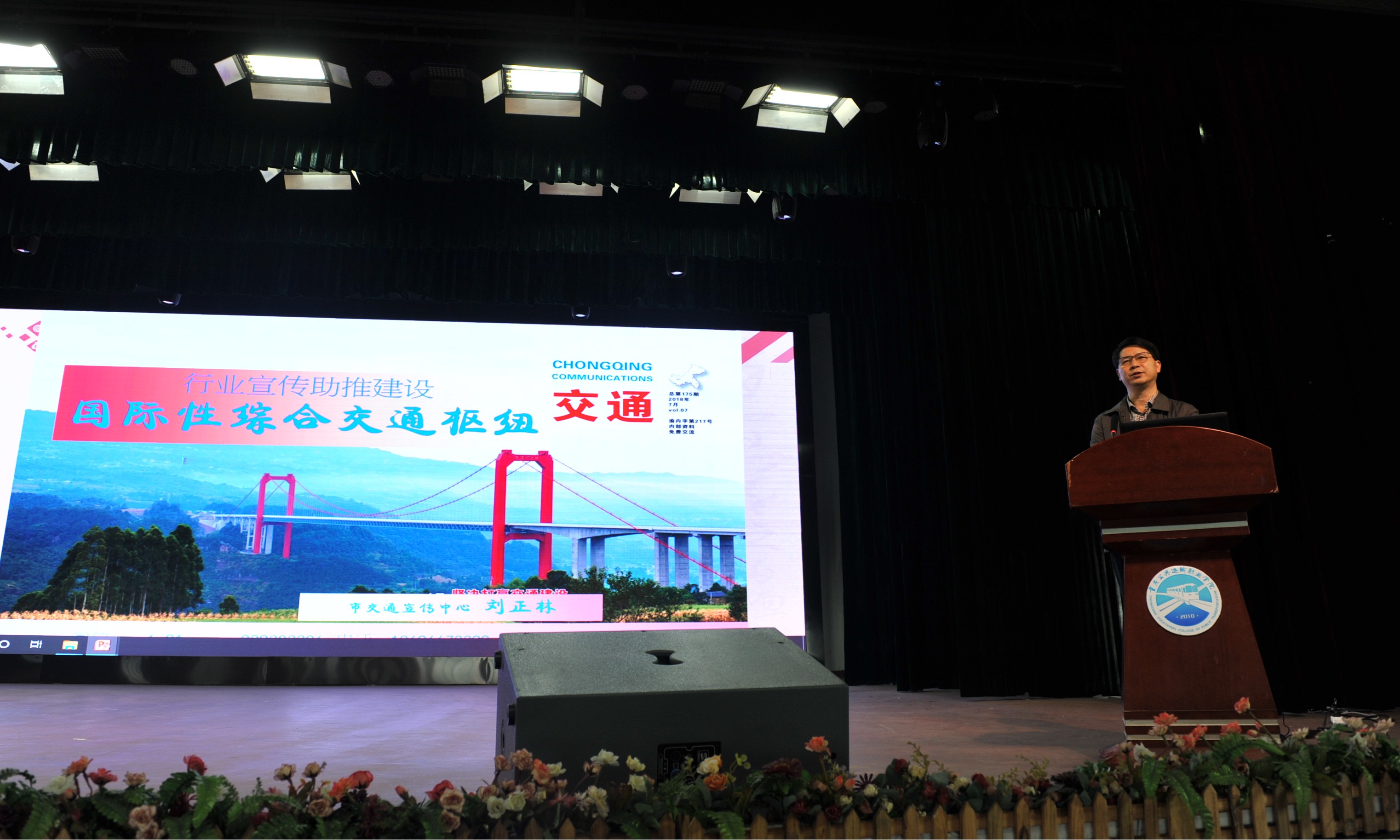 活动邀请重庆市交通局宣传中心传媒部刘正林部长,以“行业宣传助推国际性综合交通枢纽”为题,从国家宏观、全市中观、重庆交通行业微观等不同层面,为与会师生作交通行业宣传新闻工作专项报告。