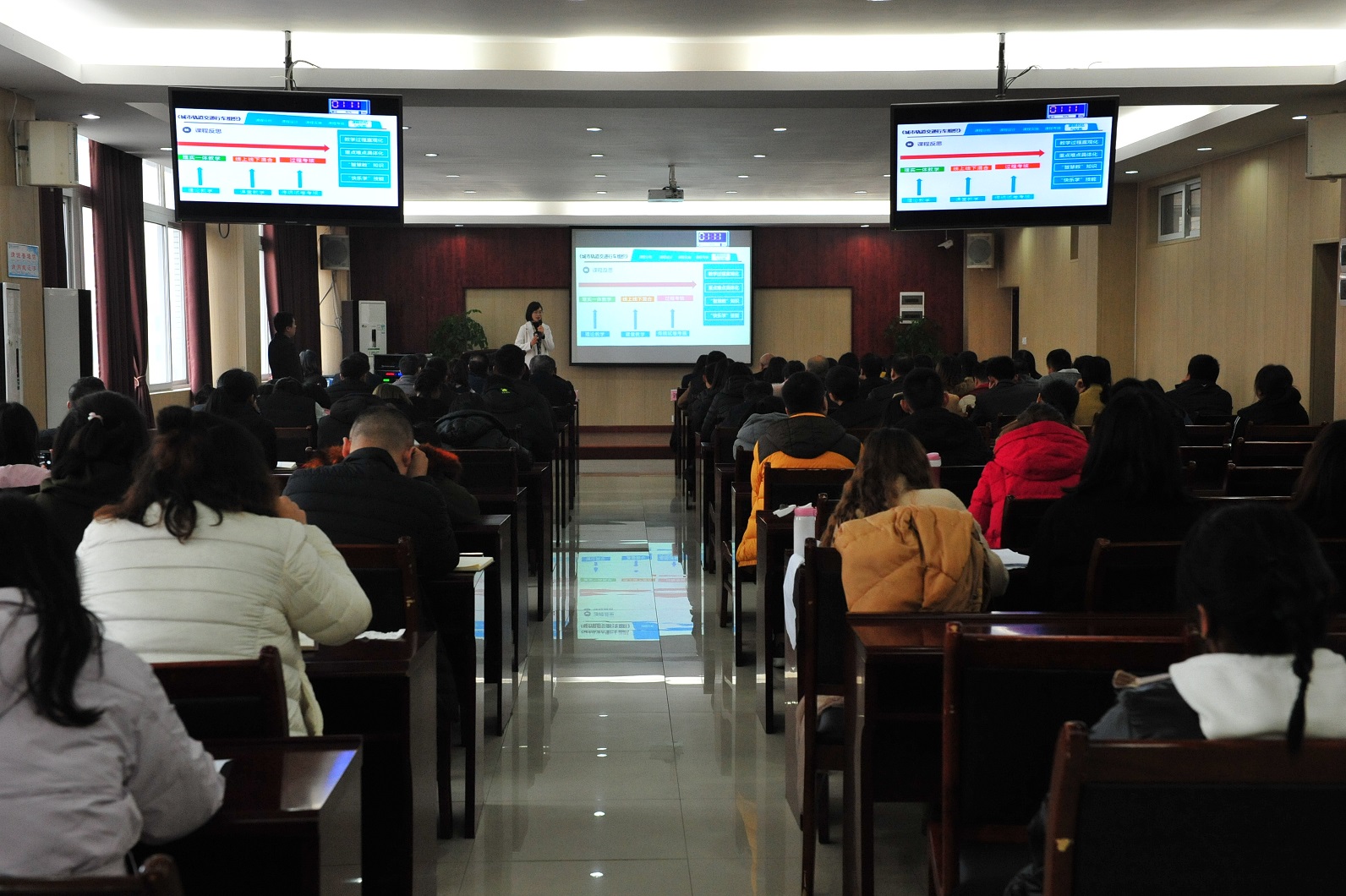 各教学单位负责人、全校专任教师代表,共130多人到场观摩。