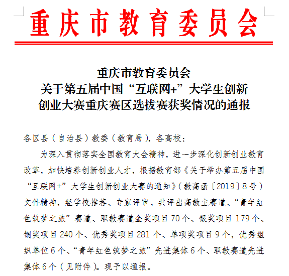 1金5银5铜 重庆运输职院揽获第五届中国“互联网+”大学生创新创业大赛多项大奖