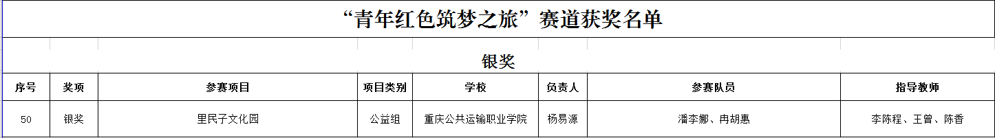 在青年红色筑梦之旅赛道比赛中,学院选送的“里民子文化园”获银奖。