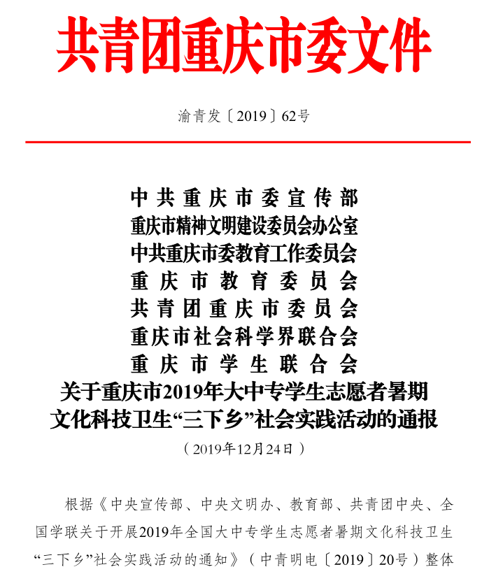 重庆运输职院获市2019暑期“ 三下乡” 社会实践活动多项荣誉