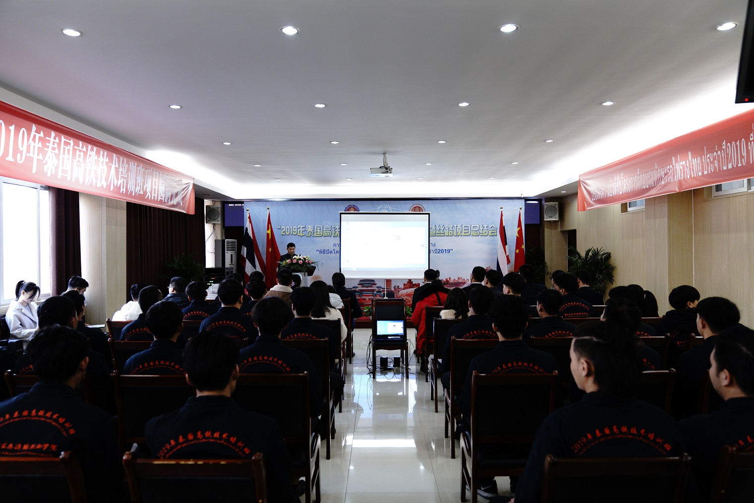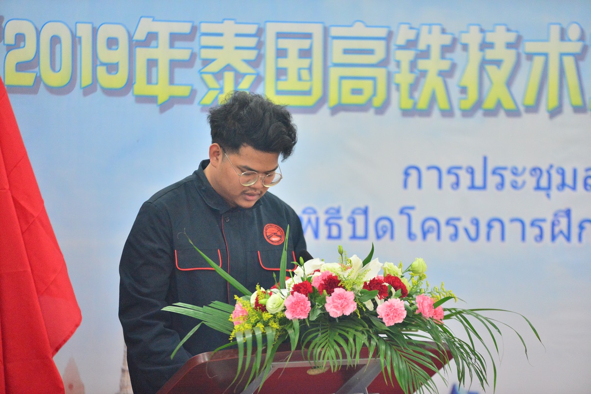 留学生代表春武里技术学院李书兰、素那塔尼技术学院包伯在发言中,感谢学校和教师们的辛勤栽培,表示在学院不仅学到了高铁技术知识,还收获了友谊,了解了中国文化,希望该合作项目能一直发展下去,让越来越多的泰国人来到中国,了解中国,喜欢上中国。