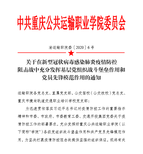 重庆运输职院党委下发通知号召各级党组织和党员干部全力以赴打赢疫情防控阻击战