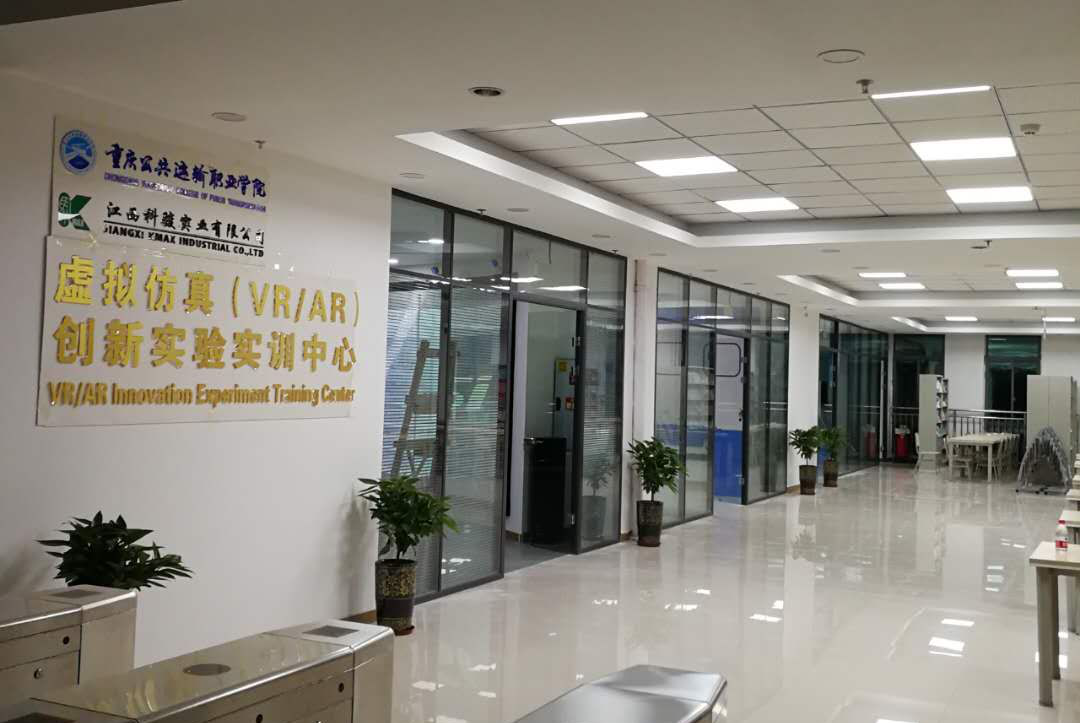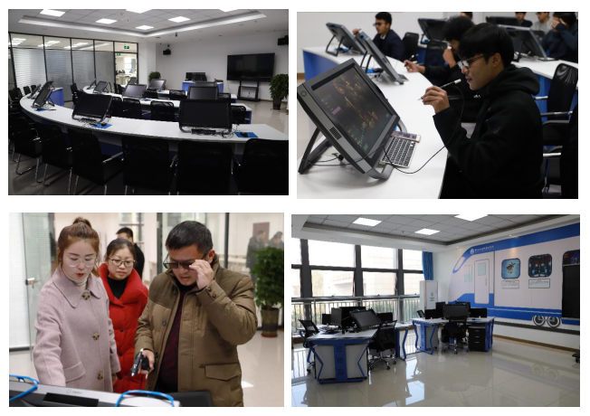 为满足日常实验教学需求、改革实验教学模式,夯实专业课程实验教学基础,2019年下半年,学院与虚拟仿真领域高新技术企业—江西科骏实业有限公司合作共建虚拟仿真(VR/AR)中心。“中心”由VR/AR教学及成果展示区、课程开发区和教学实训区三部分组成。