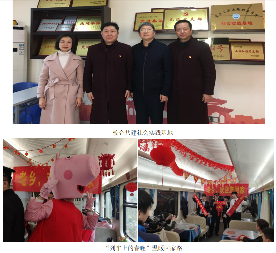 传承“专注、坚定、担当、感恩”的社会实践精神,在寒假与暑假期间,联合招就处组织2672名学生到成都铁路局北京车队、上海车队、重庆西站、北站、菜园坝火车站,重庆轨道、重庆索道等春运暑运一线,开展社会实践活动,服务总里程50余万公里、服务600多万人次,重庆车站“暖冬行动”志愿者团被共青团全国铁道委员会评为春运工作“优秀组织奖”,12名学生获评共青团全国铁道委员会2019年铁路春运优秀志愿者,5名学生获评2019年重庆市青年志愿者服务春运优秀志愿者,107名青年志愿者被予以志愿服务星级认证,充分展示作为交通强国生力军的青春风采和责任担当。