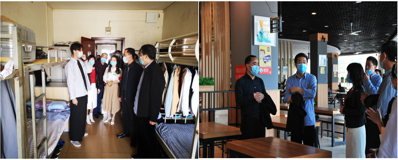 在校期间,蔚成波到教室、宿舍及食堂等重点区域,实地察看隔离室建设、卫生消杀、学生就餐安排、防疫物资储备等情况,对学院严格落实市教委和集团工作要求,扎实做好复学准备给予肯定。