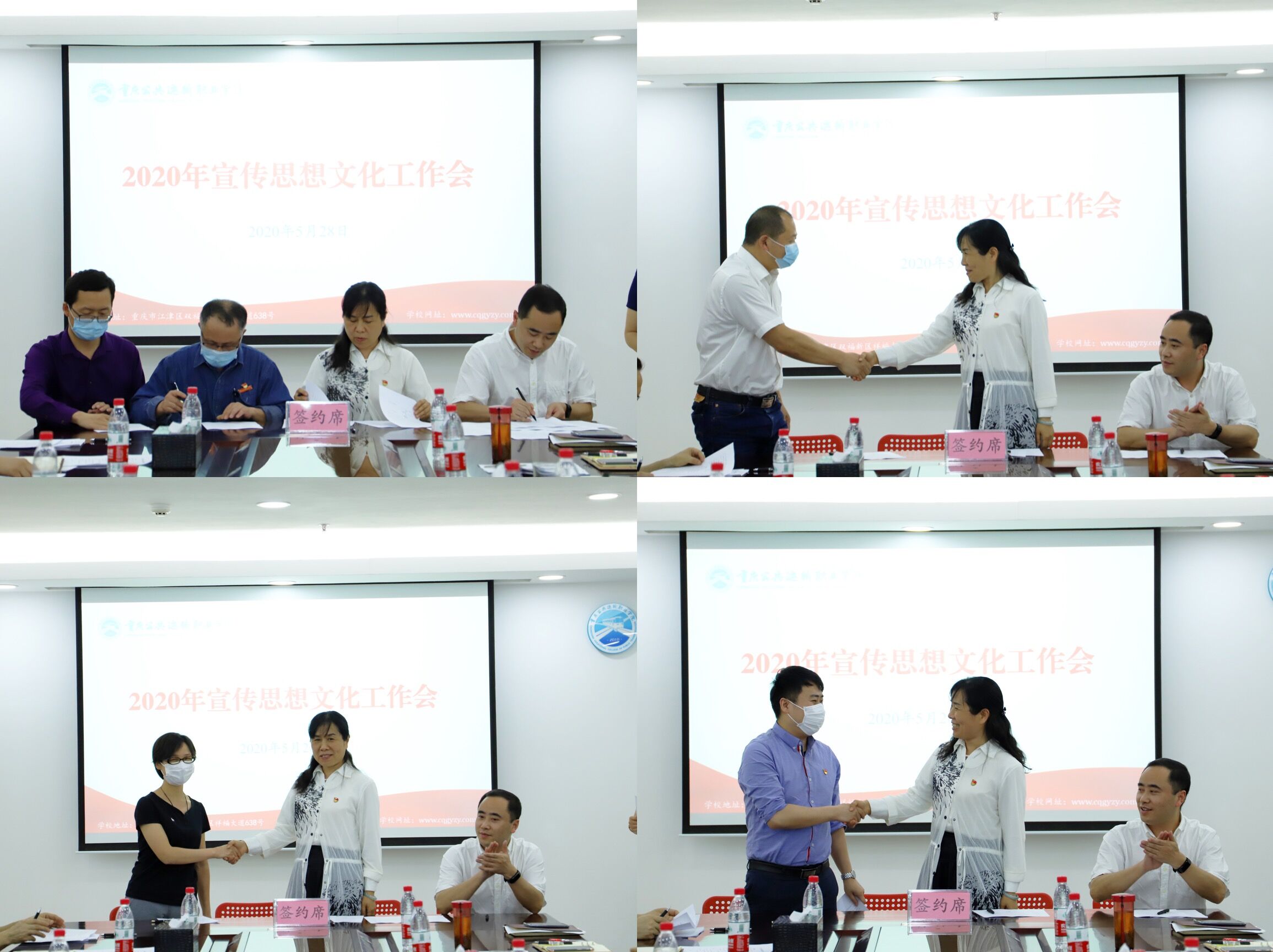 学院党委书记彭超同志、李灿同志代表学院党委,与各部门负责人签订《2020年度意识形态工作目标责任书》。