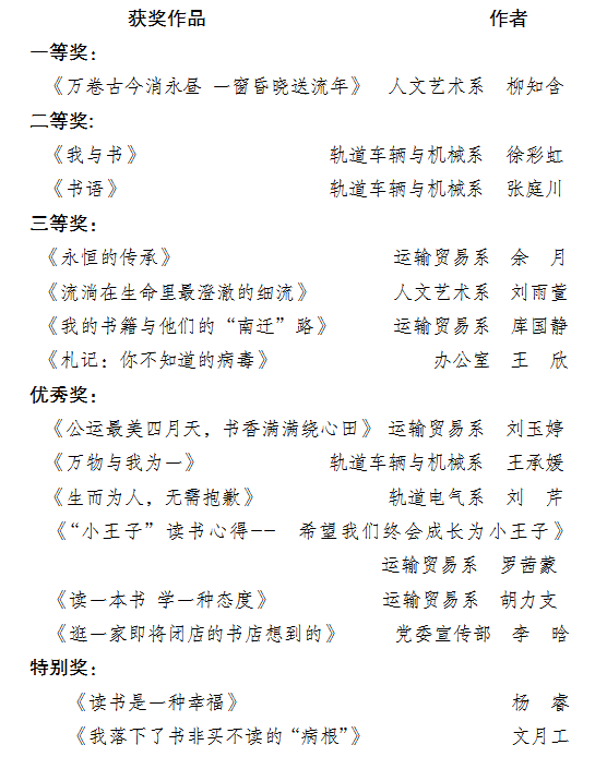 重庆运输职院第二届我的读书故事征文评选结果揭晓