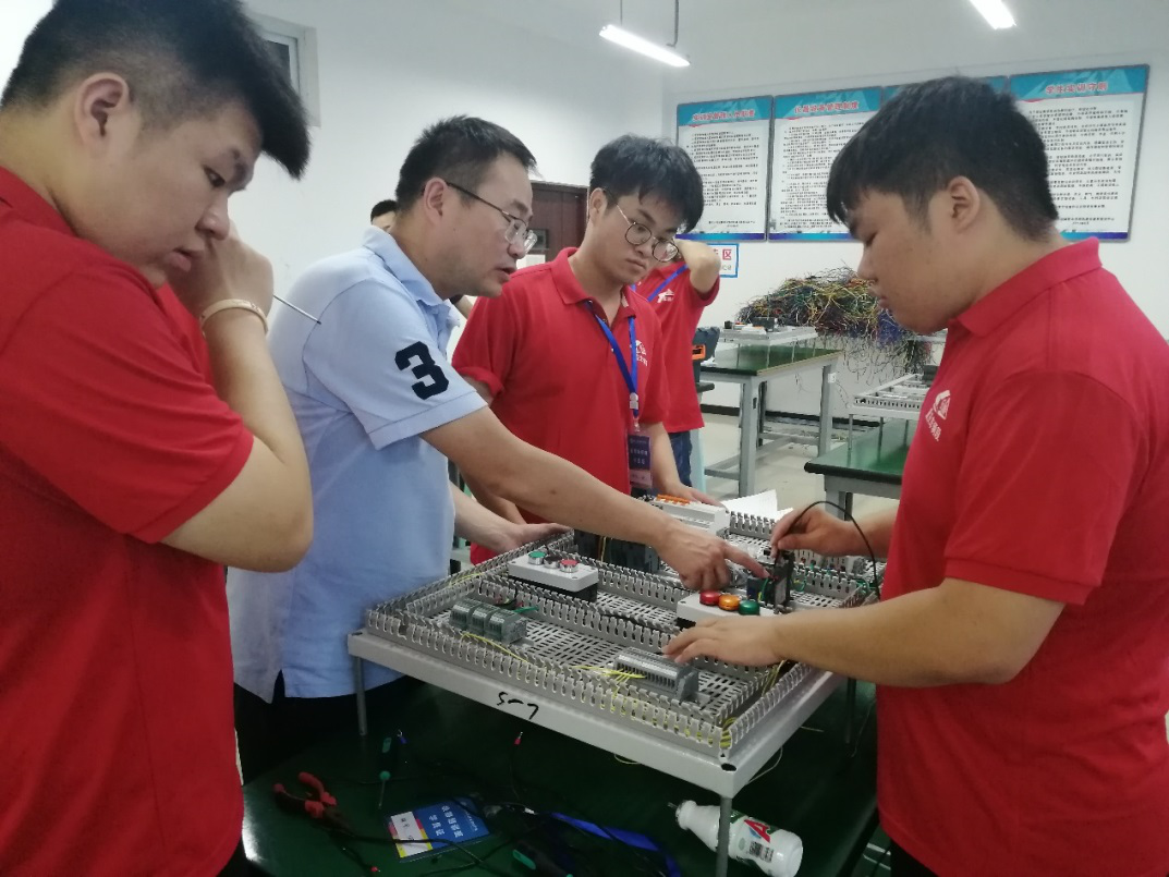 本次培训的师资,主要由学院具有企业工作经验的“双师型”教师担任,内容主要包括锯削、锉削、錾削加工、刮磨和研磨、孔加工和螺纹加工、故障诊断、减速器拆装、传动机构维修、机械设备保养,电工、电子仪表的使用及安全用电、导线连接与绝缘恢复、临时供电用电设备设施的安装维护、电子元器件选用及电路焊接调试、单相、三相异步电动机的性能测试及维护、低压电器的选用及继电器、接触器线路装调、可编程控制器控制电路装调、变频器参数设置与控制电路装调等。