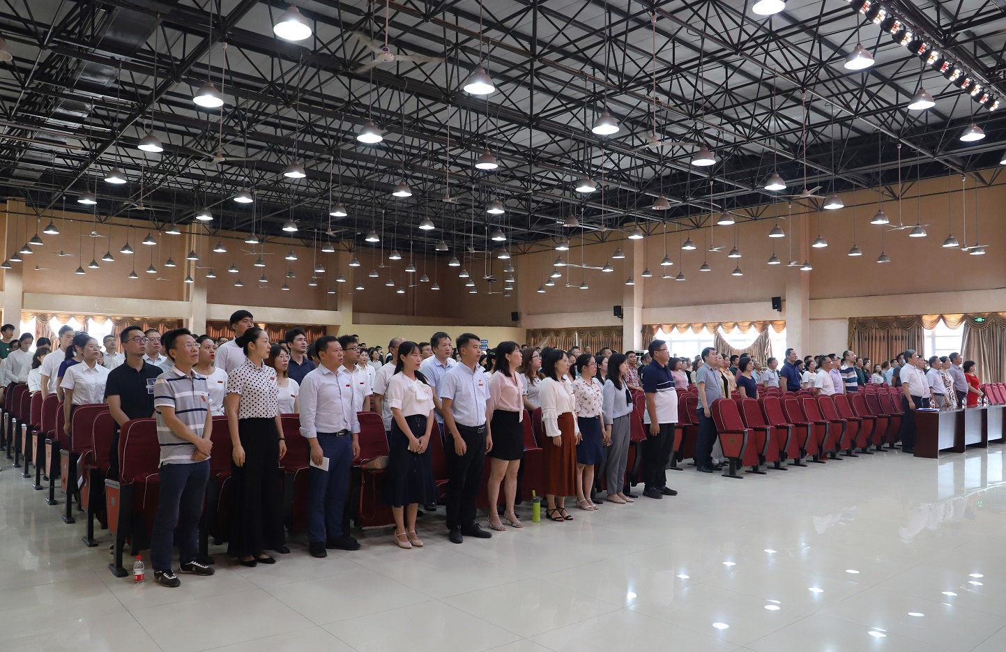 邱发胜、唐春林副院长,技校钟晓芬副校长等学院、技校领导班子成员,全体教职工、学生代表,共400多人参加会议。大会由学院纪委书记兼工会主席杨睿主持
